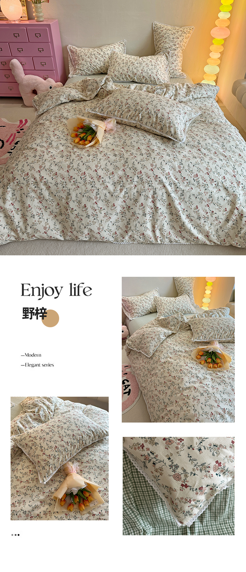 商品名称:千朵 2023新款全棉水洗带边四件套 野梓