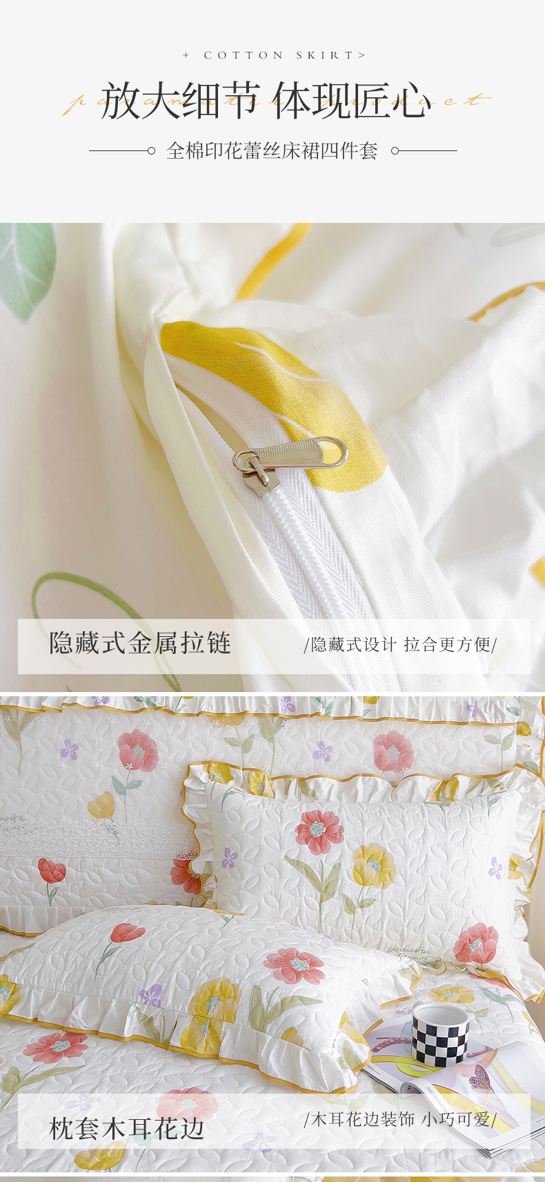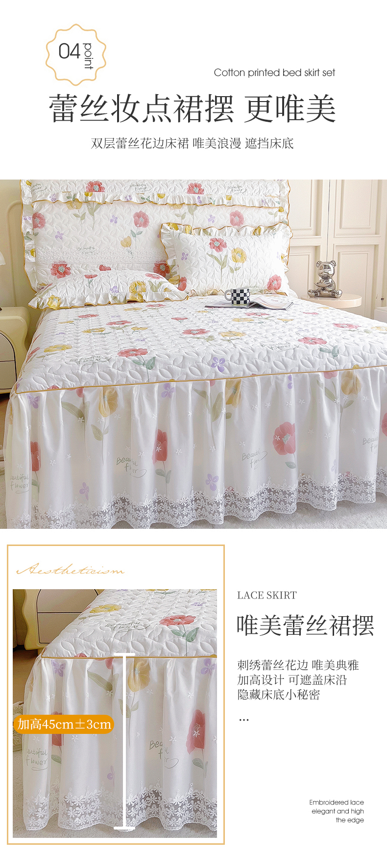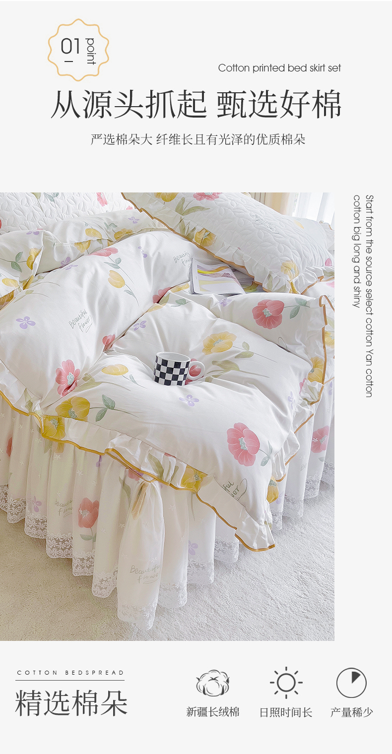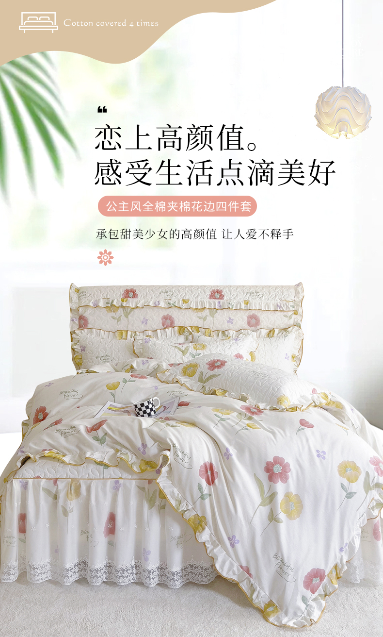 当前位置: 91家纺网 > 商品网购 > 床品套件 > 四件套 > 全棉普通四件套 > 十个点 2024新款印花夹棉蕾丝四件套 素锦