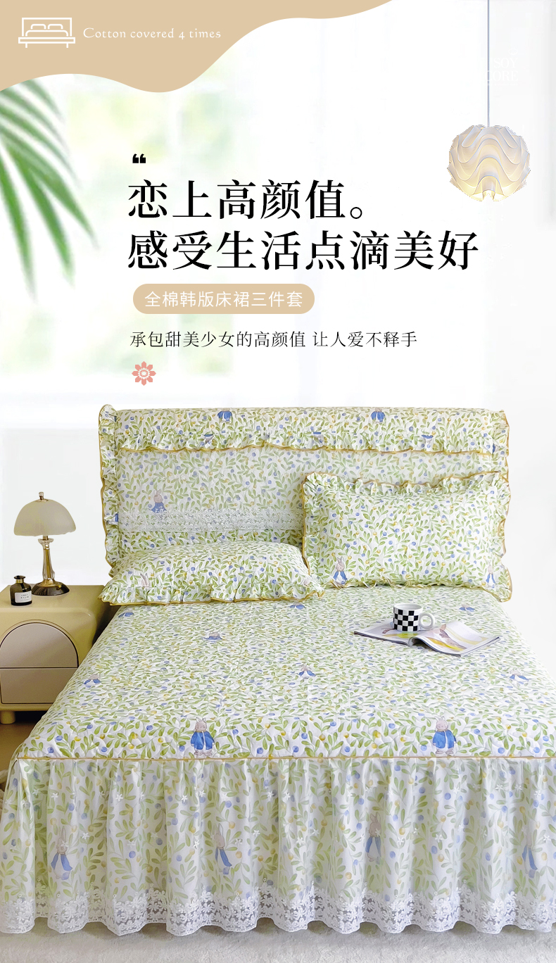 (总)十个点家纺 2025新款加厚磨毛木棉床裙三件套-绫罗系列,爱意萌萌,贝贝熊,格桑花,海棠花,蝴蝶兔,花千骨,米兰,木棉花,山茶花,同心结,心相印,心愿-米