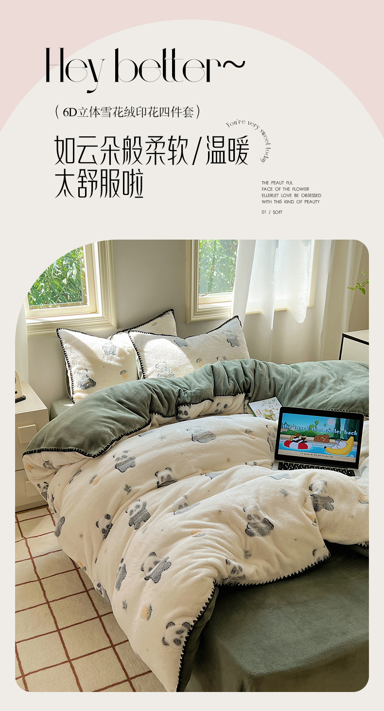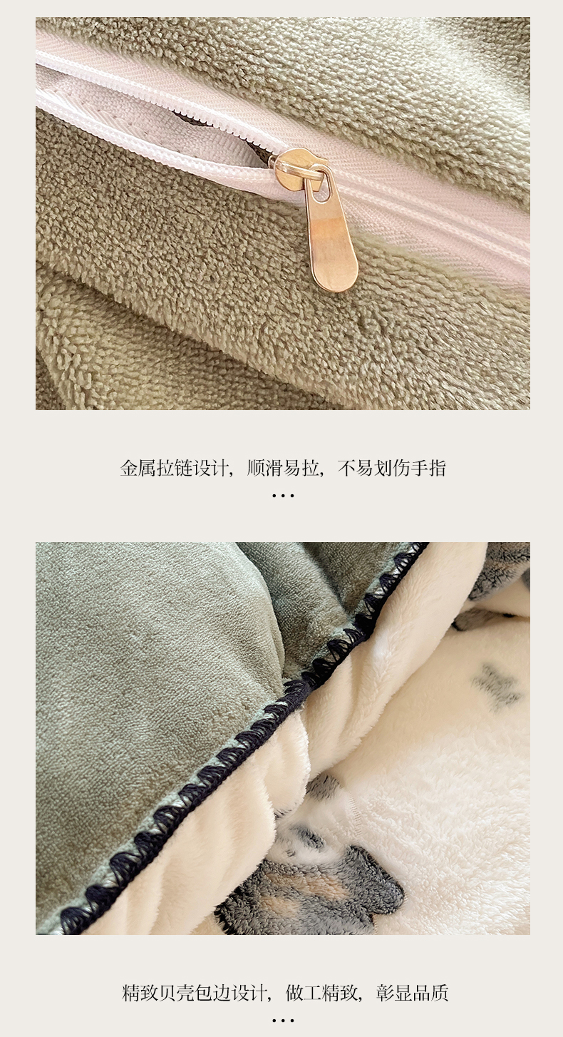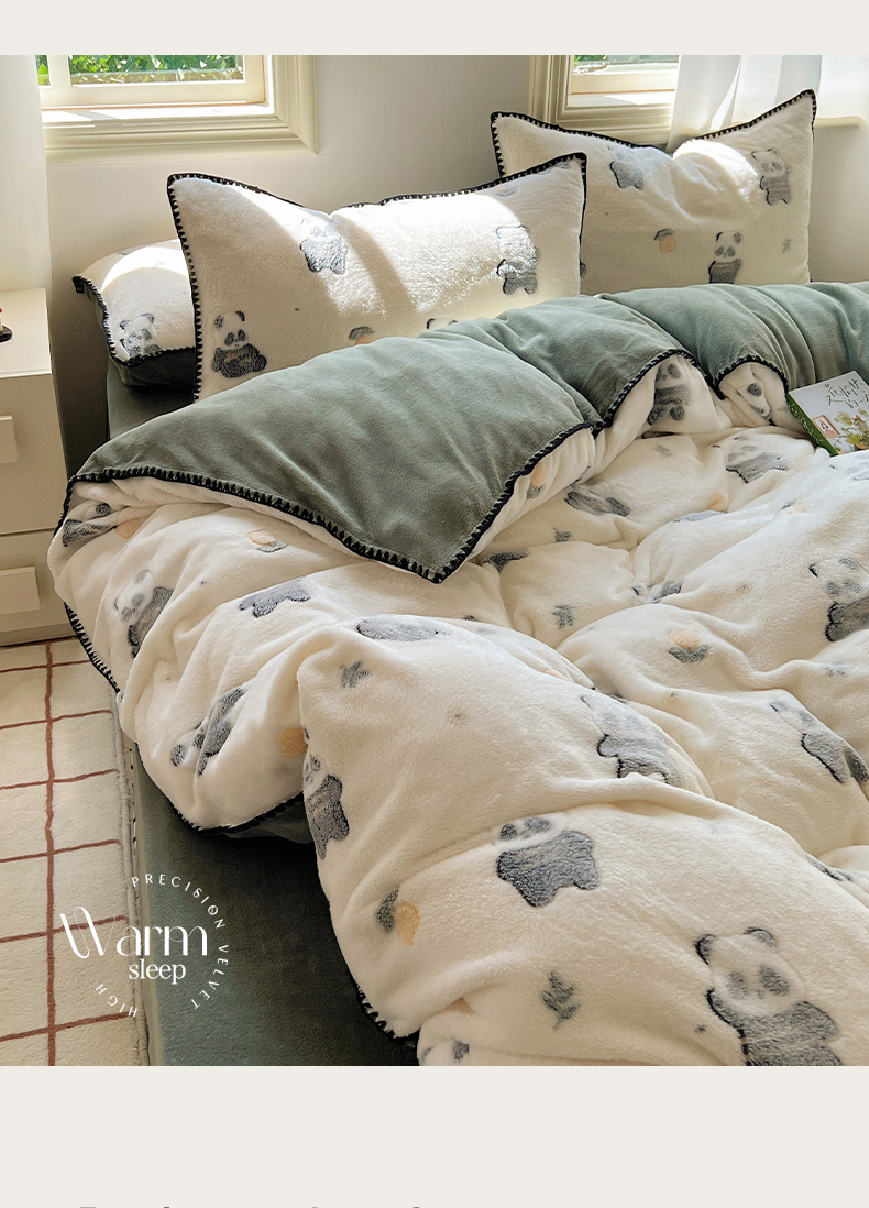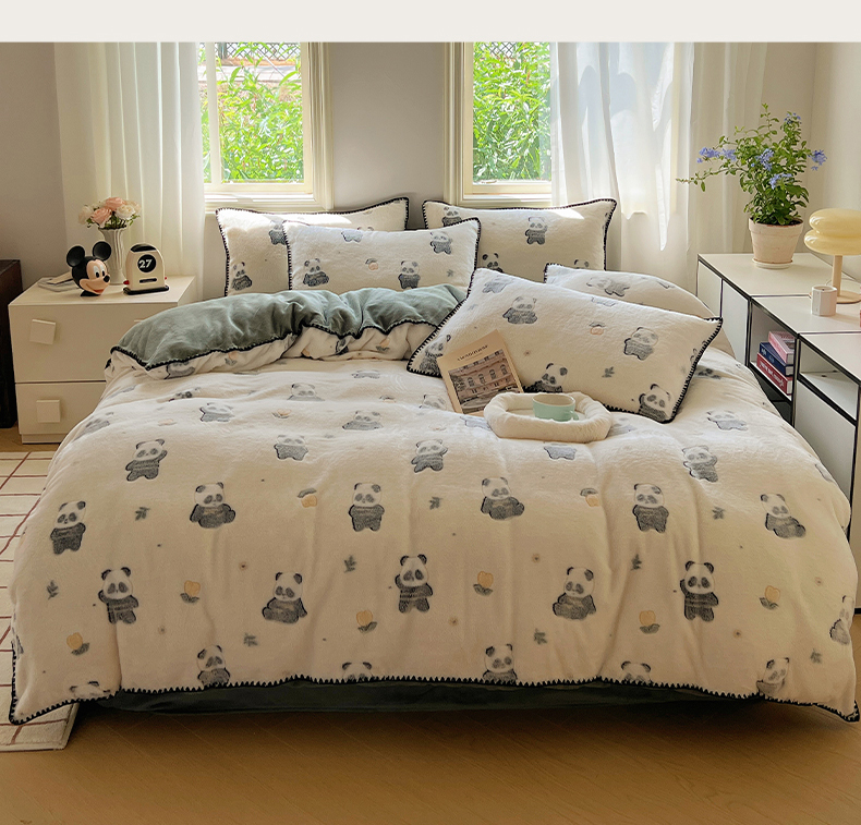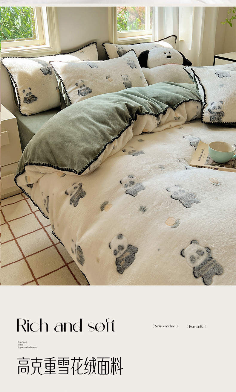 商品名称:三朵家纺 2023新款高克重雪花绒绒混搭系列四件套 萌宠乐园