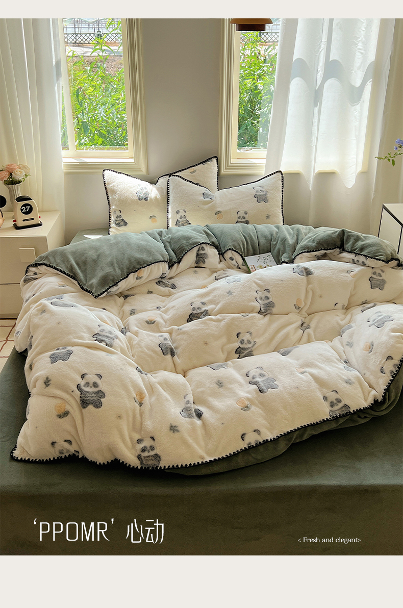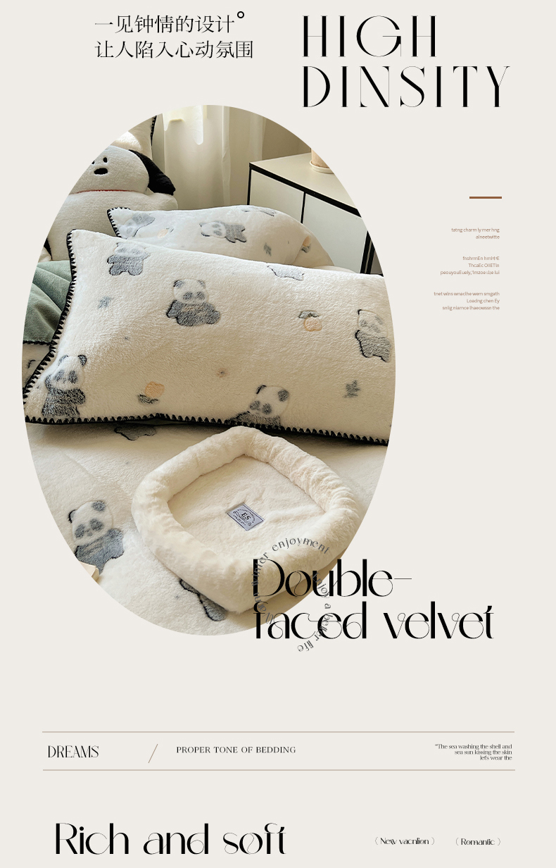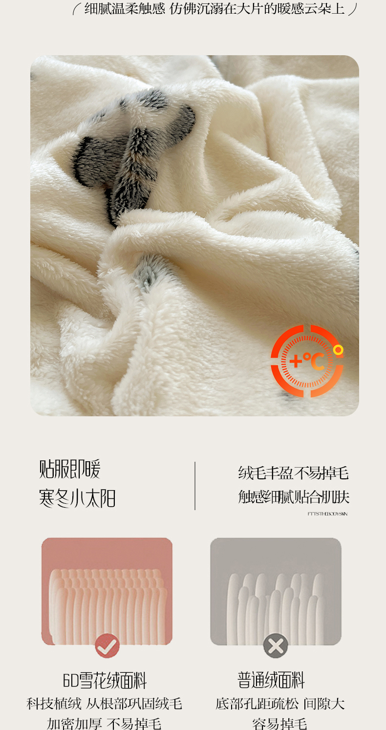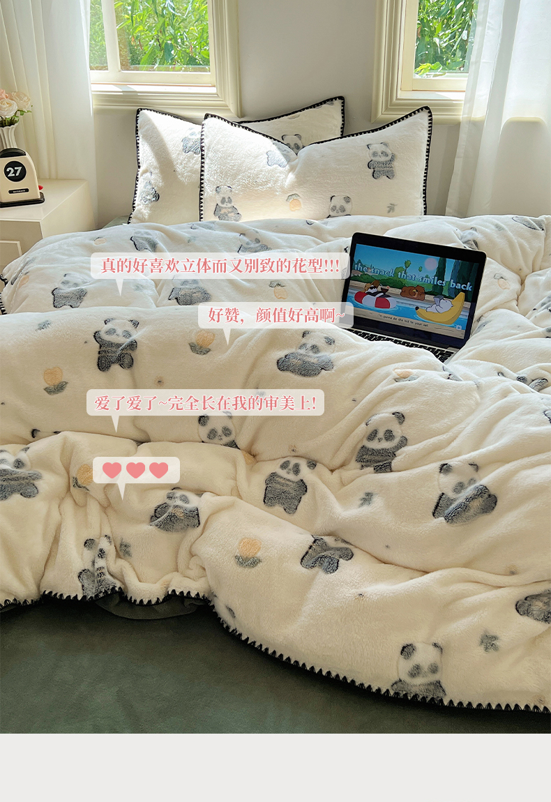 商品名称:三朵家纺 2023新款高克重雪花绒绒混搭系列四件套 萌宠乐园