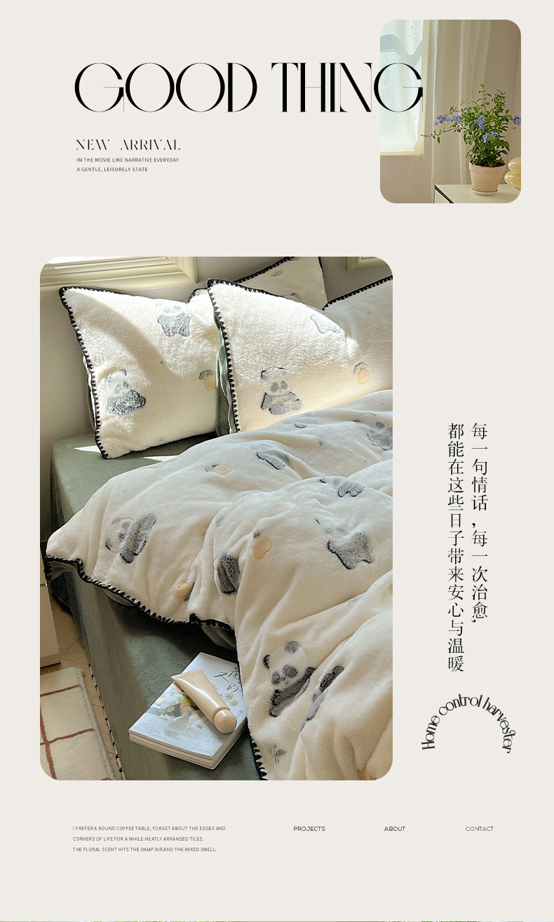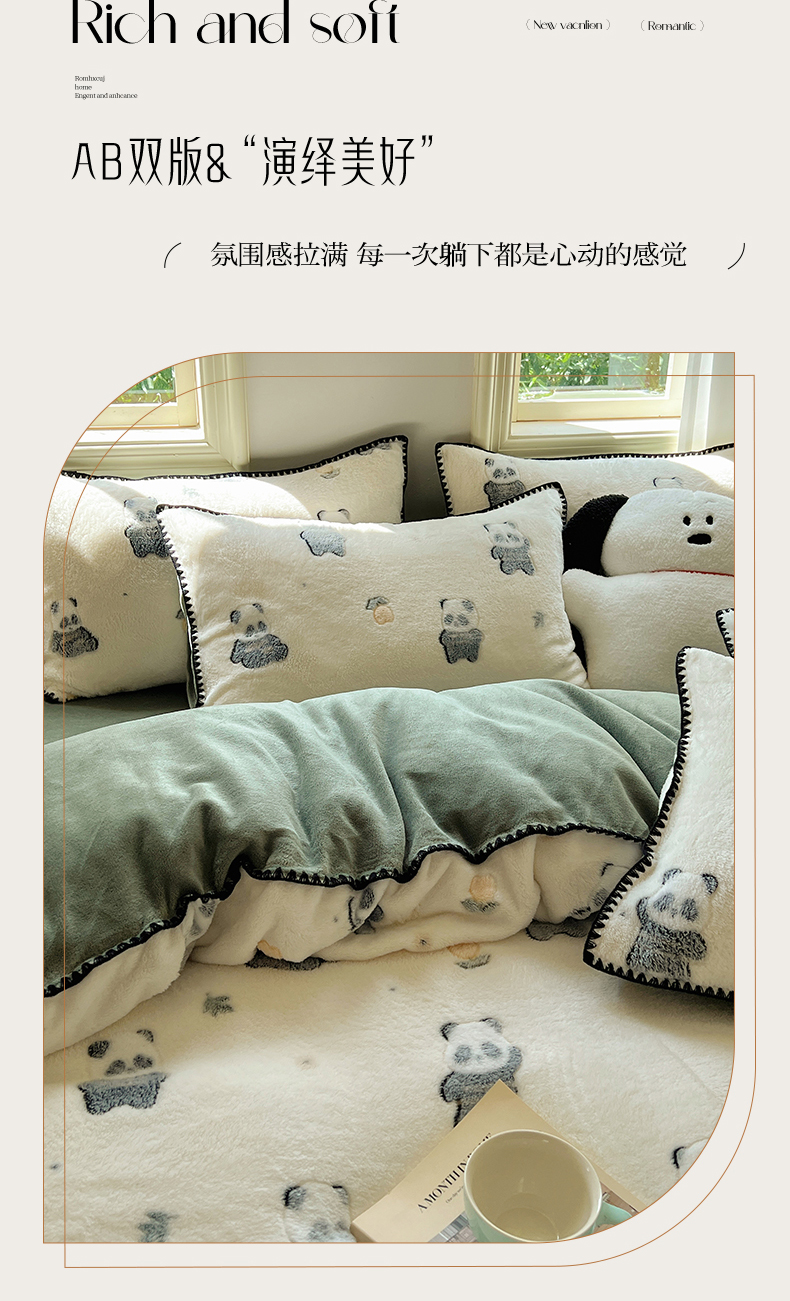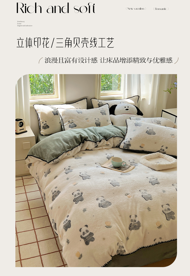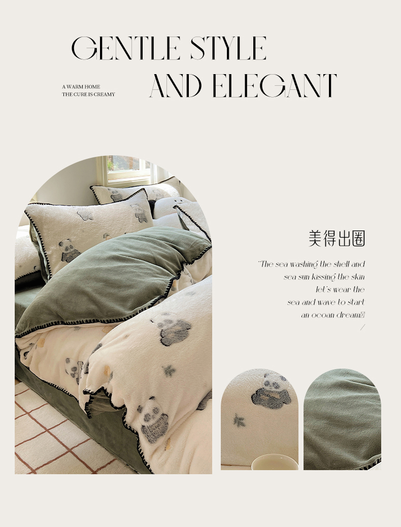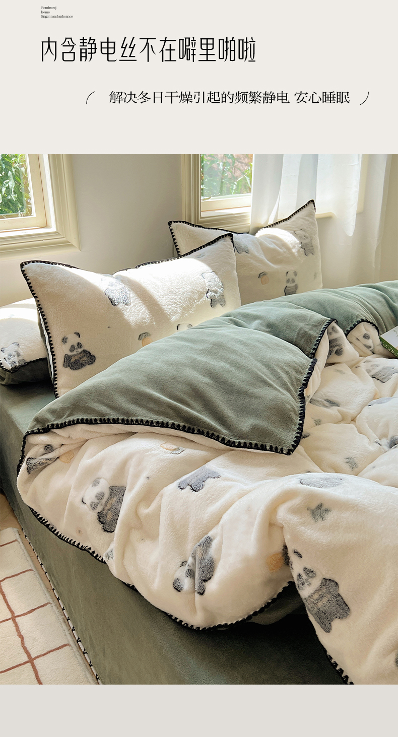 商品名称:三朵家纺 2023新款高克重雪花绒绒混搭系列四件套 萌宠乐园