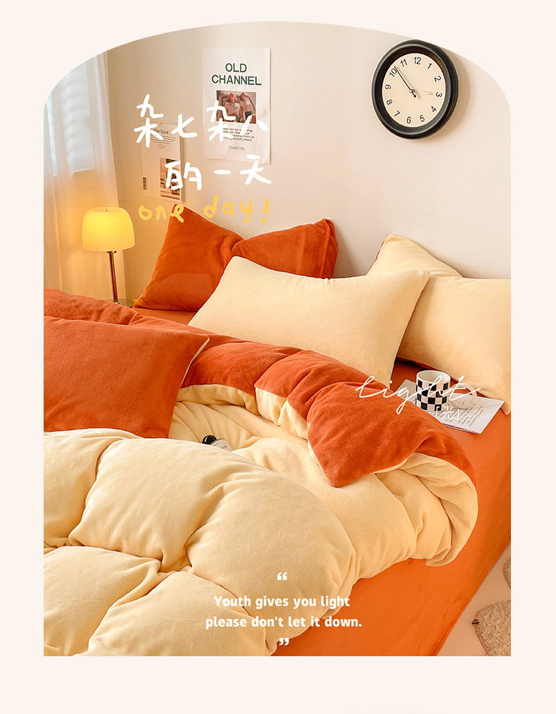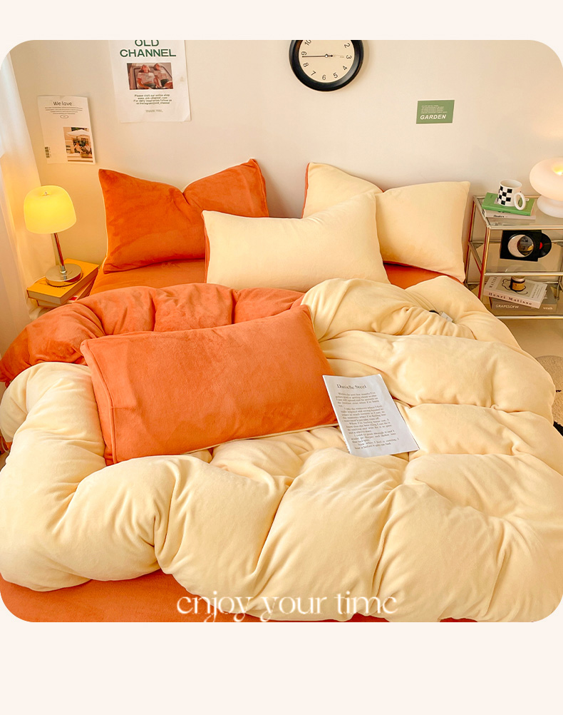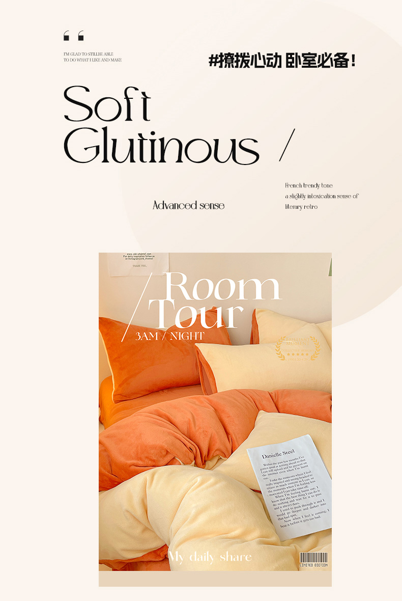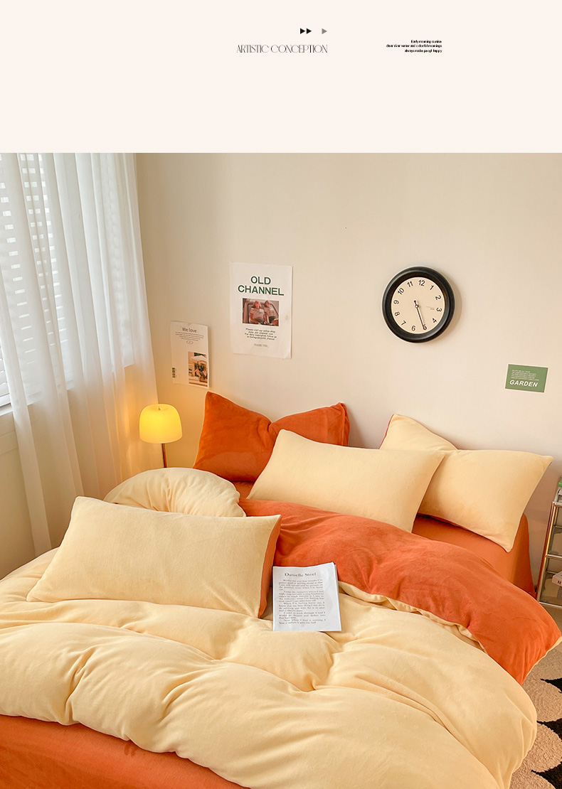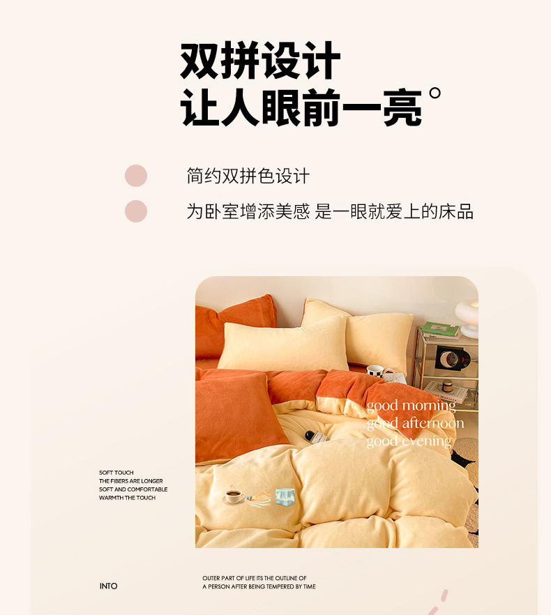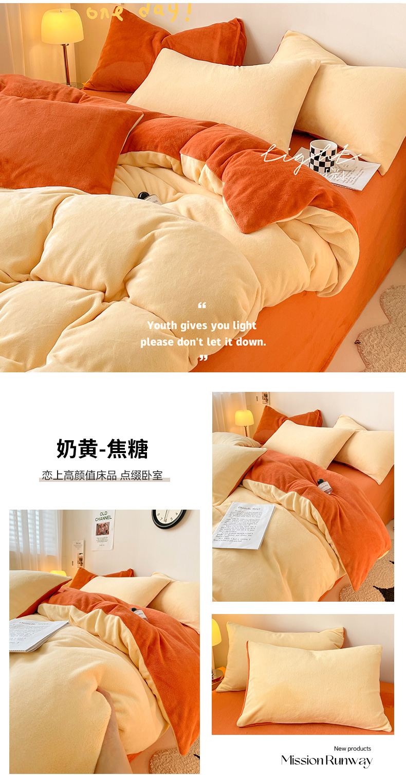 当前位置: 91家纺网 > 商品网购 > 床品套件 > 四件套 > 牛奶绒四件套 > 眠帛家居 2023新款加厚牛奶绒双拼四件套 奶黄-焦糖