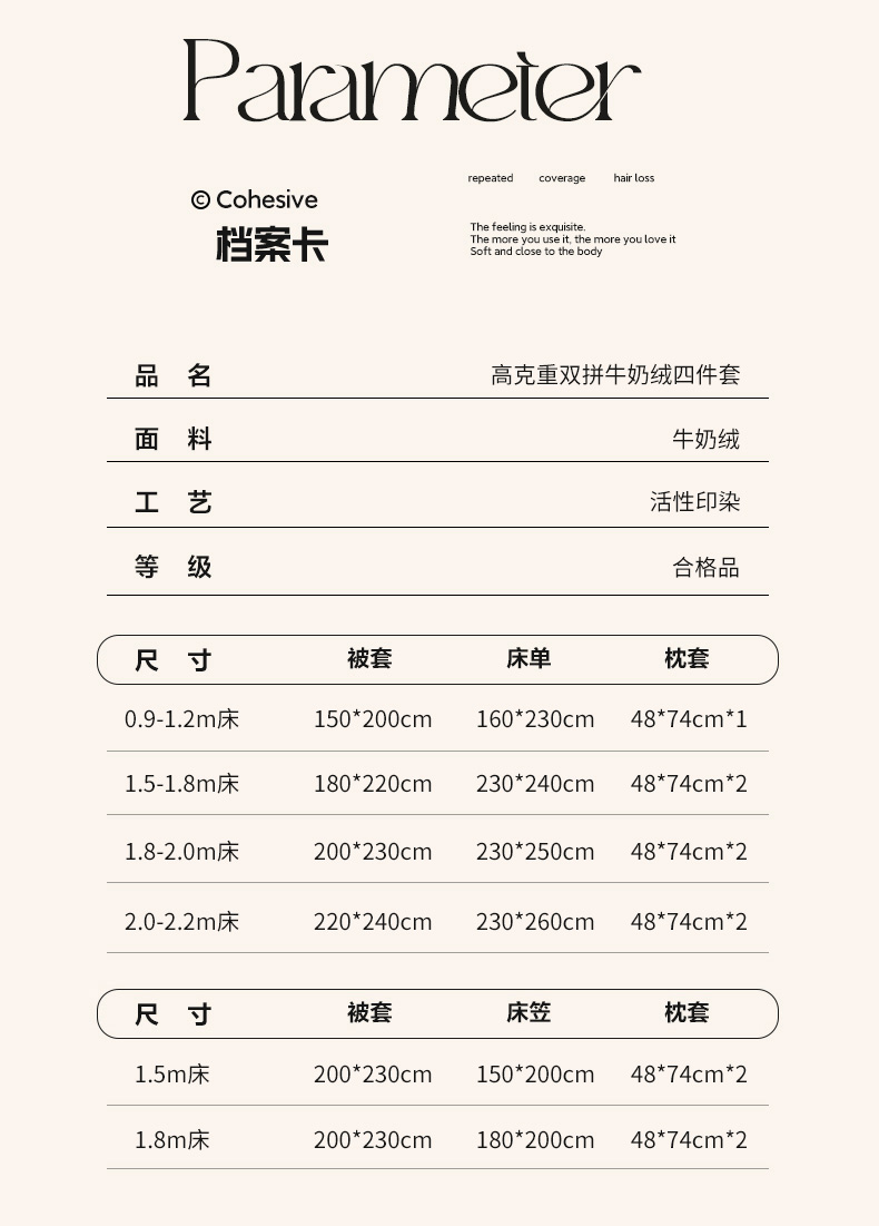标准被套配1.5床笠:被套200*230 床笠150*200 | ¥90.00 |