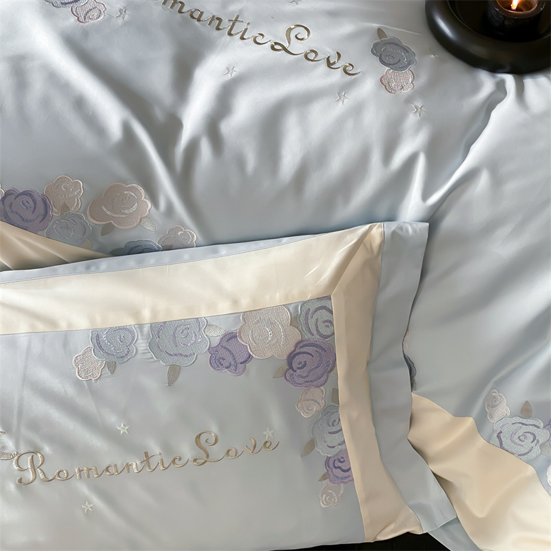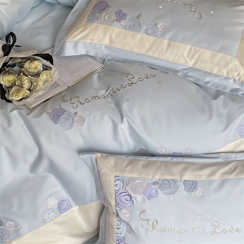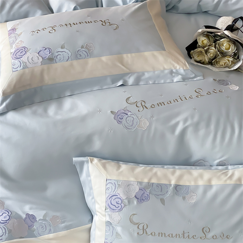 MIU缪家居 2023新款100支全棉磨毛四件套系列 一轮玫瑰 一轮玫瑰 蓝色
