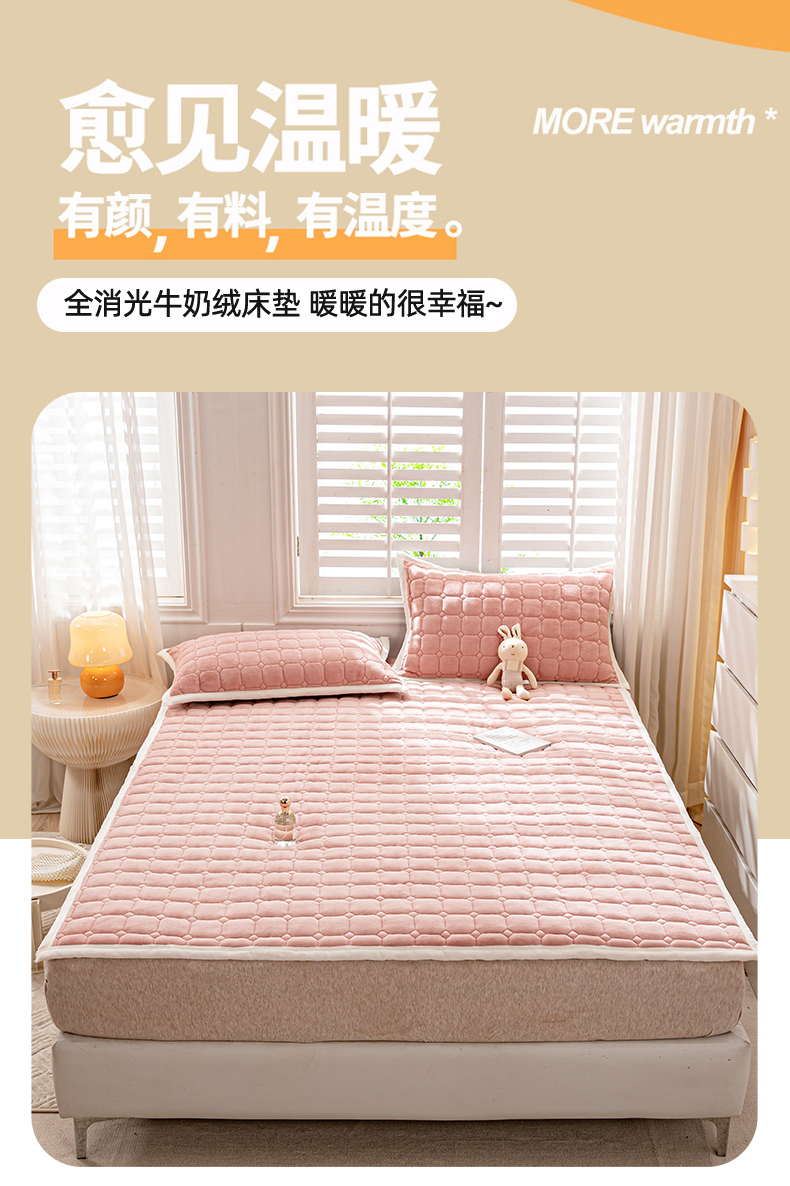 凡客家居 2025新款加厚牛奶绒夹棉床垫 浅豆沙