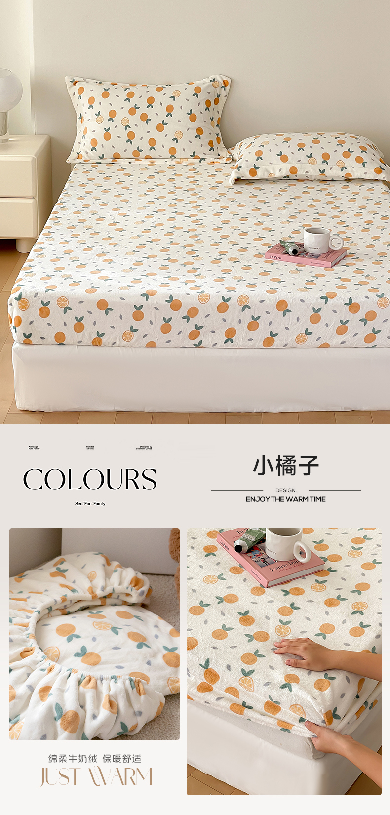 商品名称:时光里 2023新款全消光加厚牛奶绒印花单品单床笠 小橘子