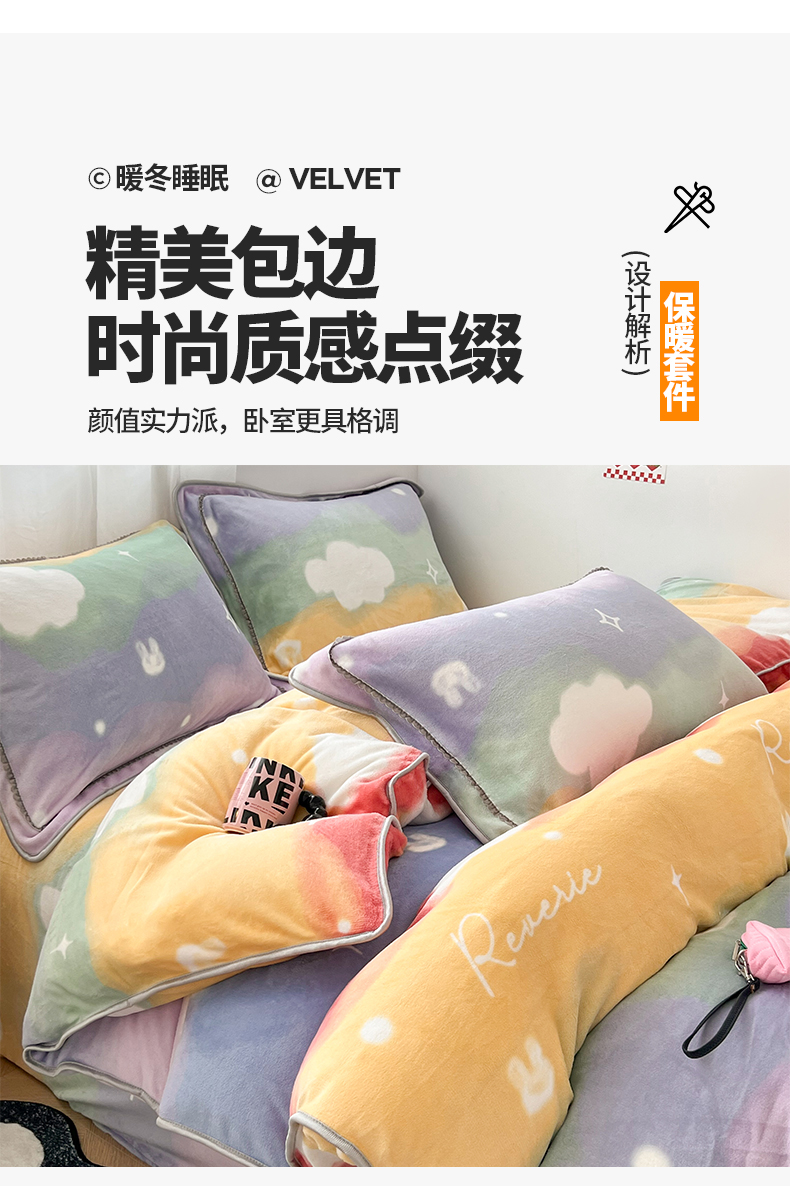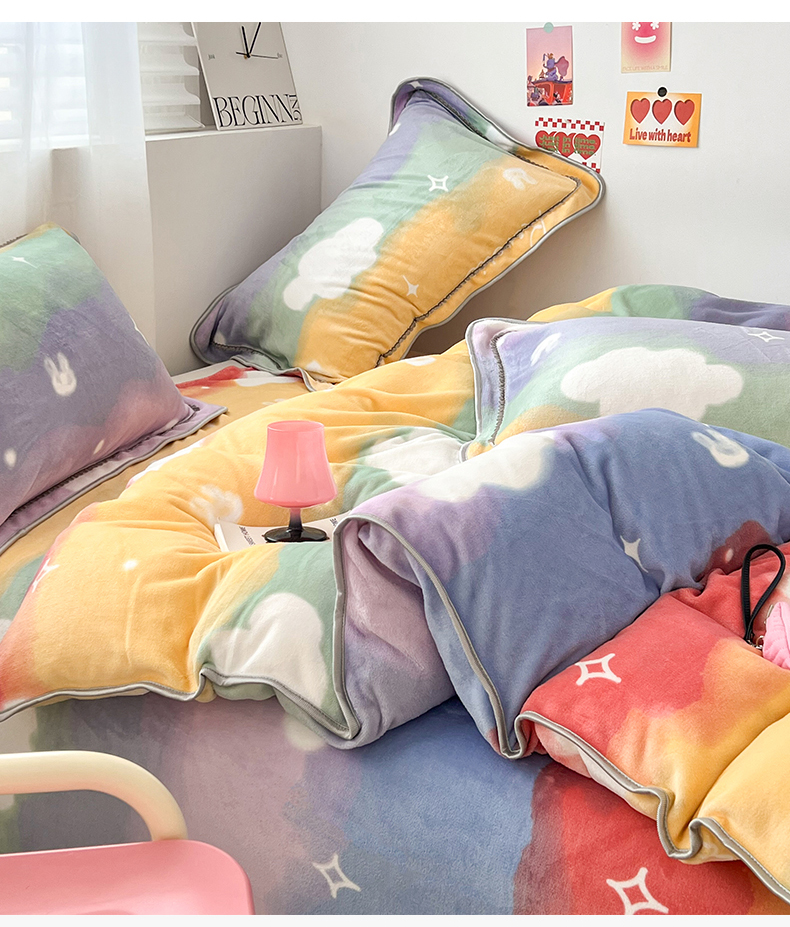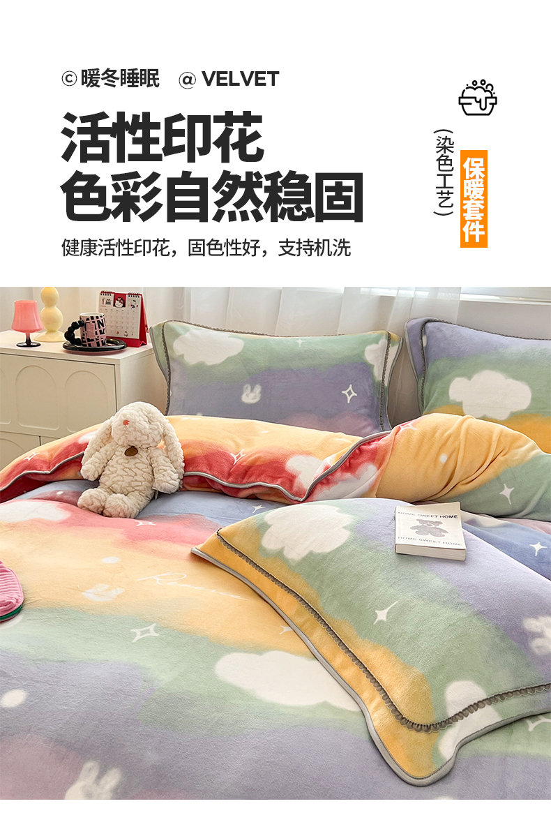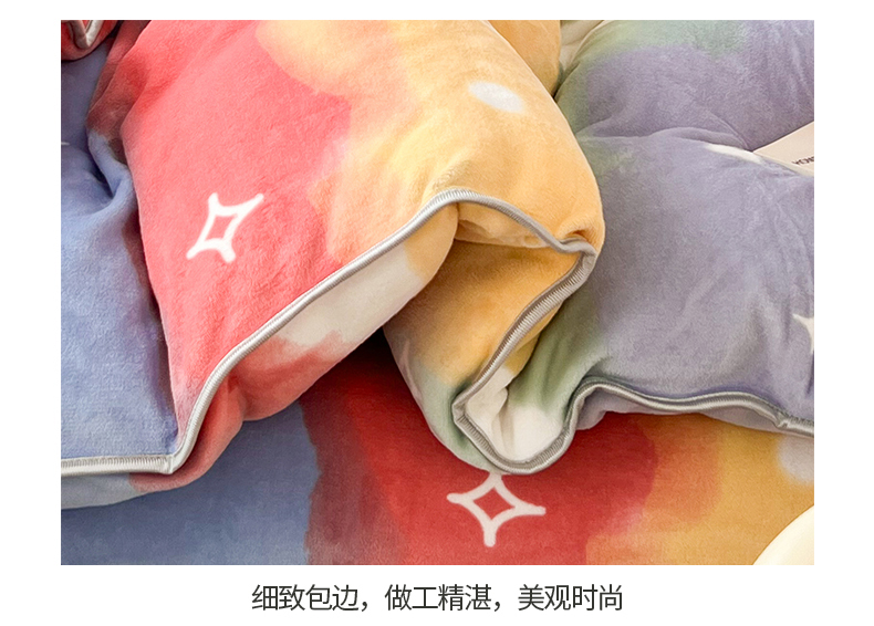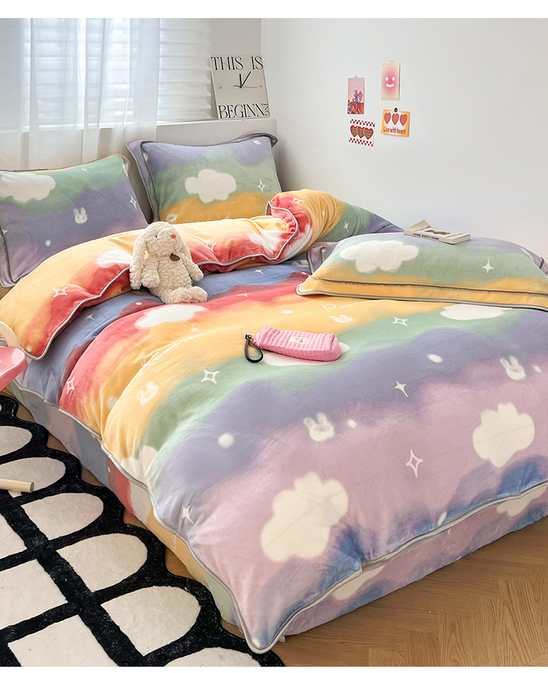 商品名称:懒猫家纺 2024新款【包边款印花】牛奶绒四件套 彩虹糖
