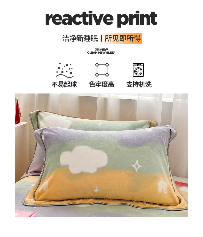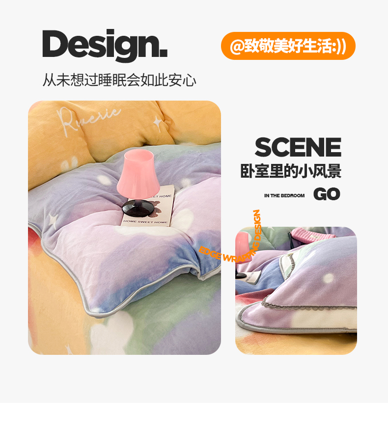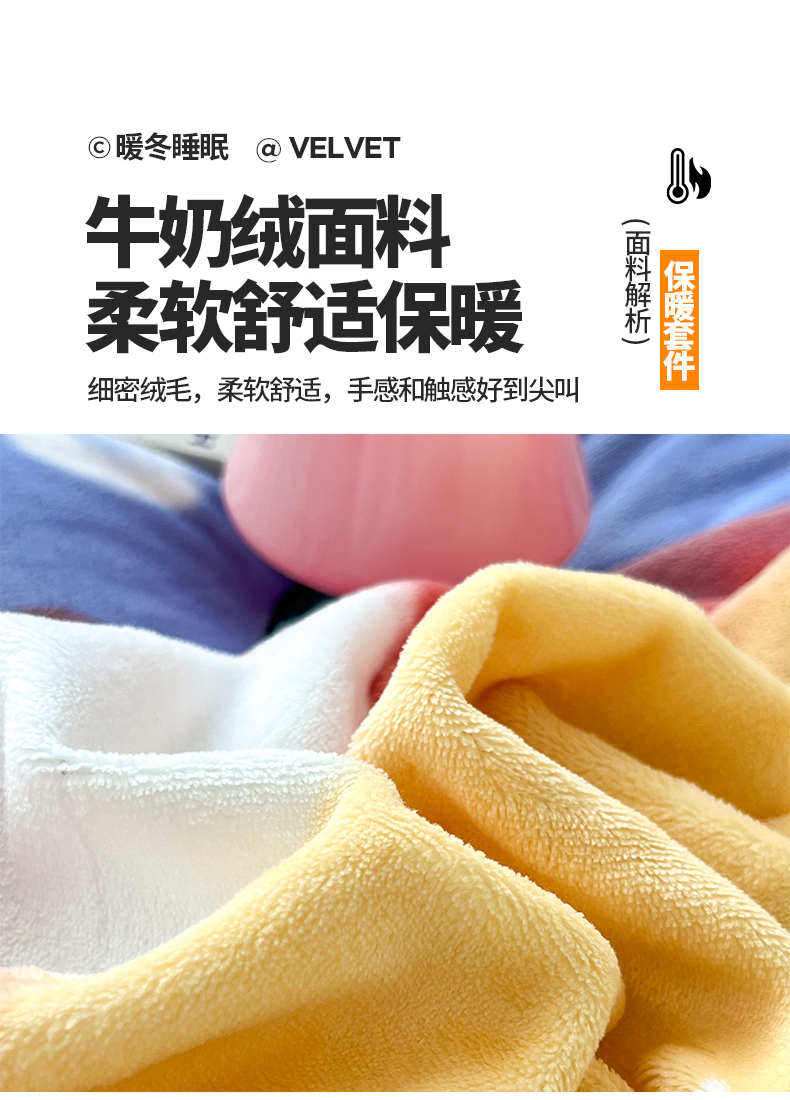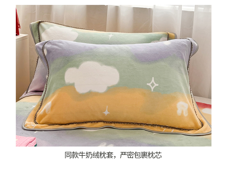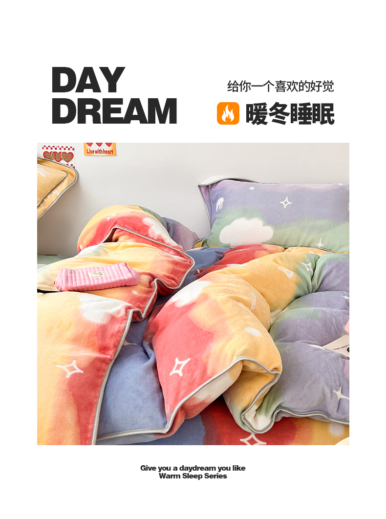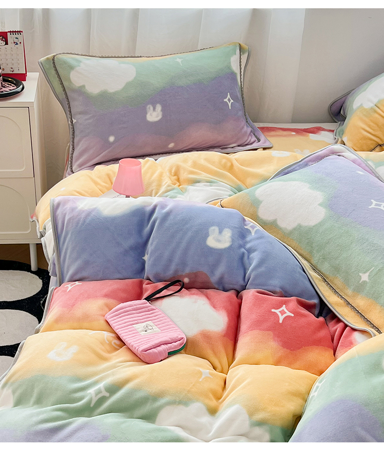商品名称:懒猫家纺 2024新款【包边款印花】牛奶绒四件套 彩虹糖