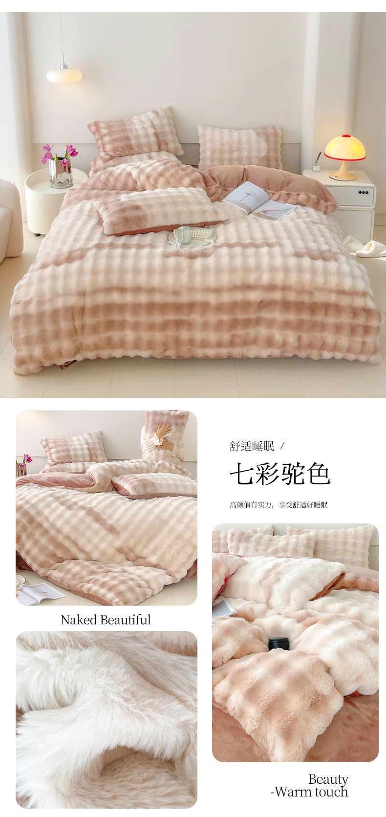 商品名称:一比一 2023新款兔毛七彩印花牛奶绒四件套 七彩驼色