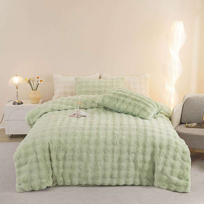 牛牛家纺 2025新款AB面泡泡兔兔绒皮草四件套 抹茶绿