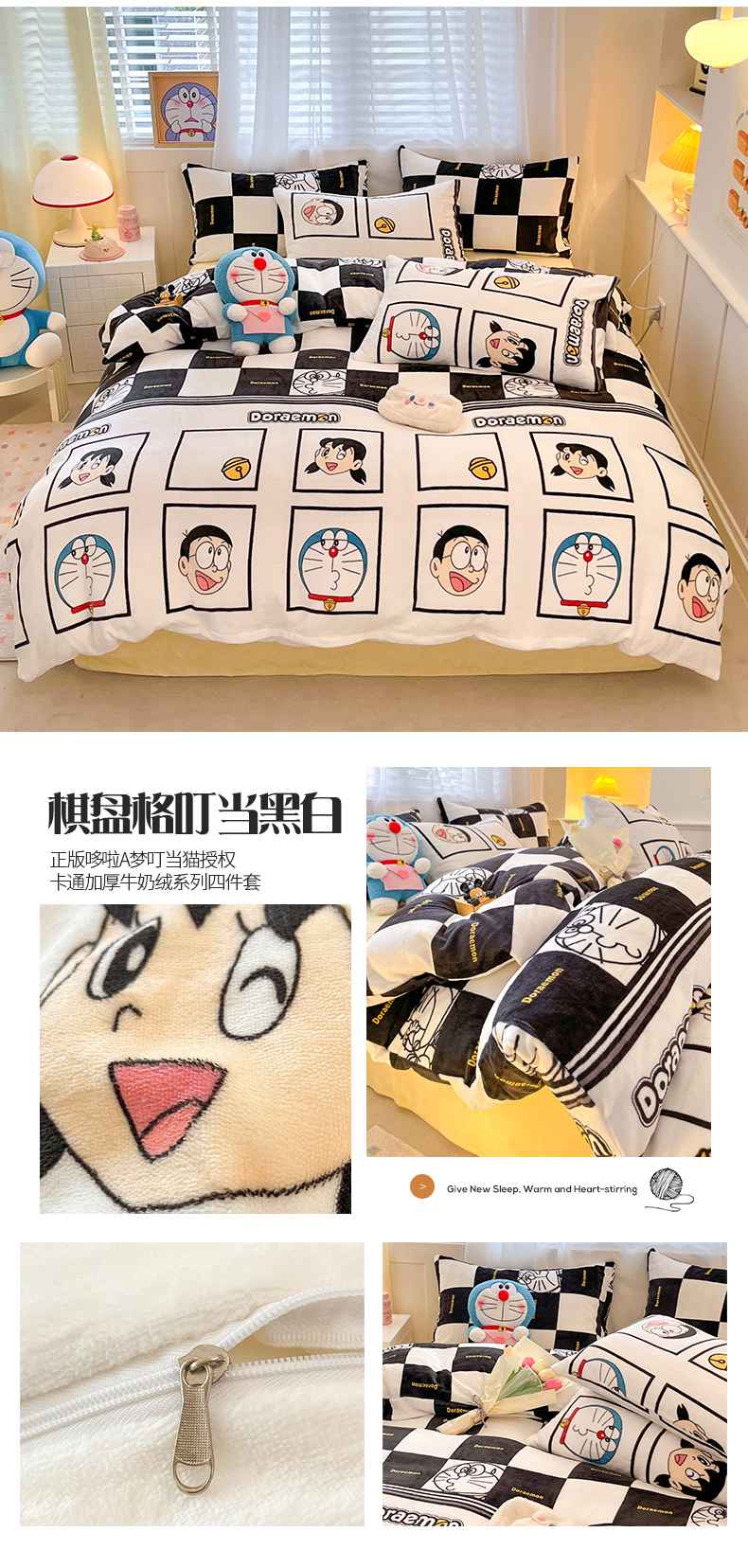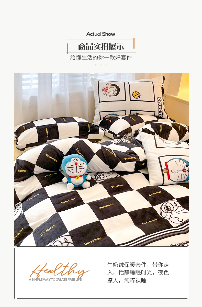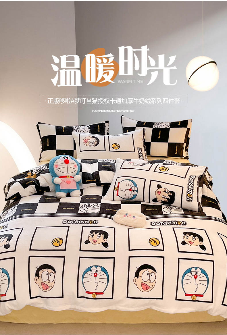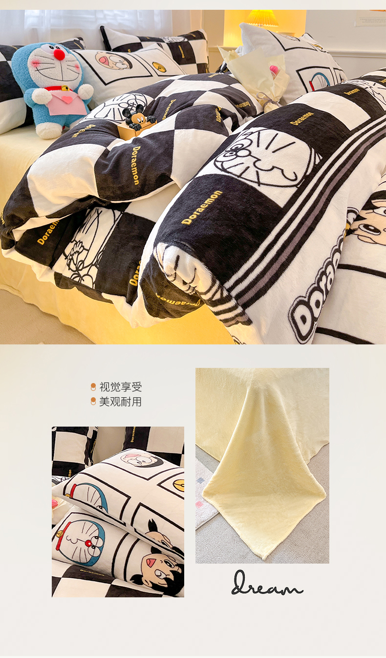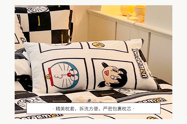 当前位置: 91家纺网 > 商品网购 > 床品套件 > 四件套 > 牛奶绒四件套 > 桃子家居 2023新款正版哆啦A梦叮当猫授权卡通加厚牛奶绒系列四件套 绒哆啦A梦-棋盘格叮当黑白