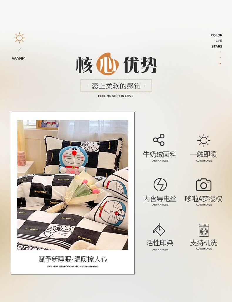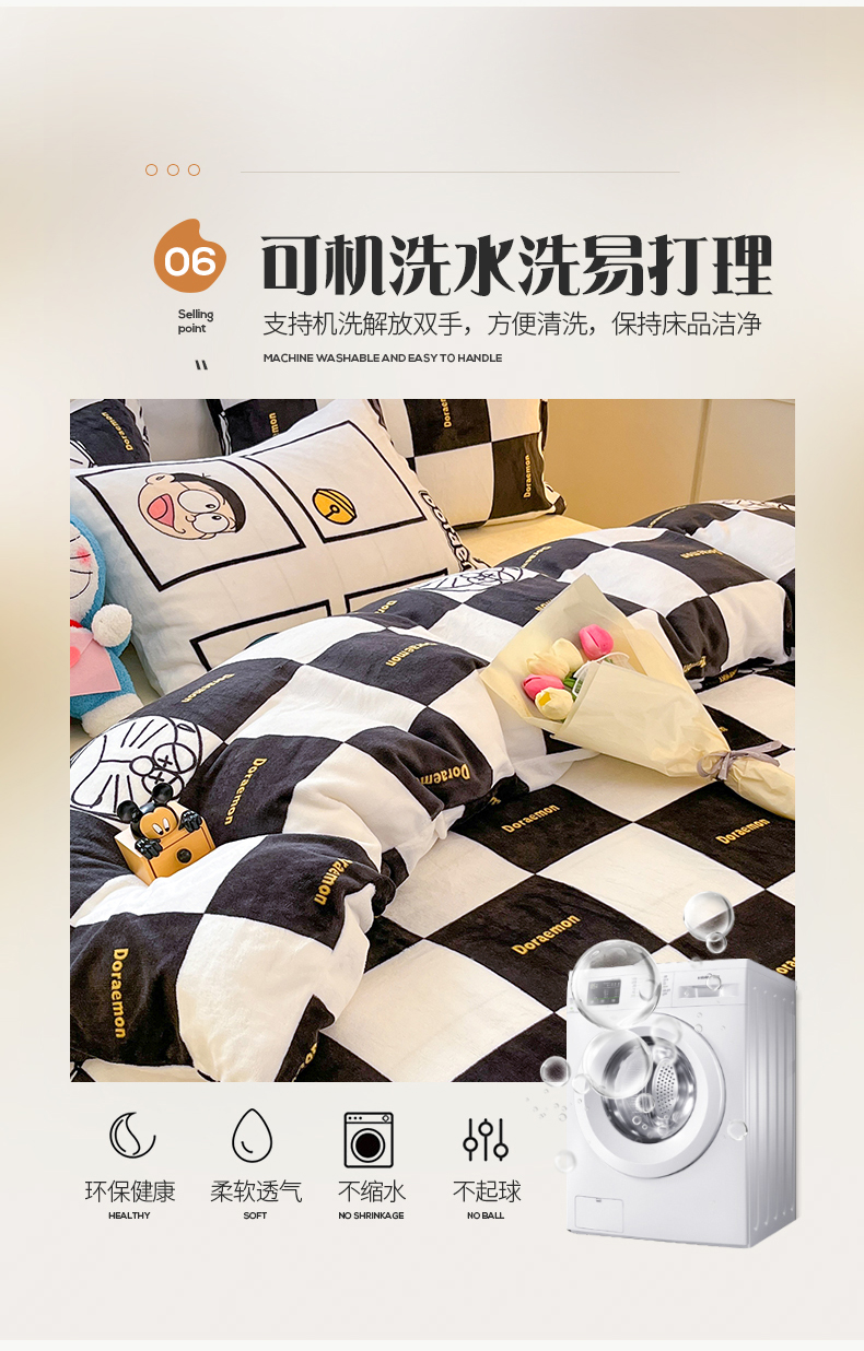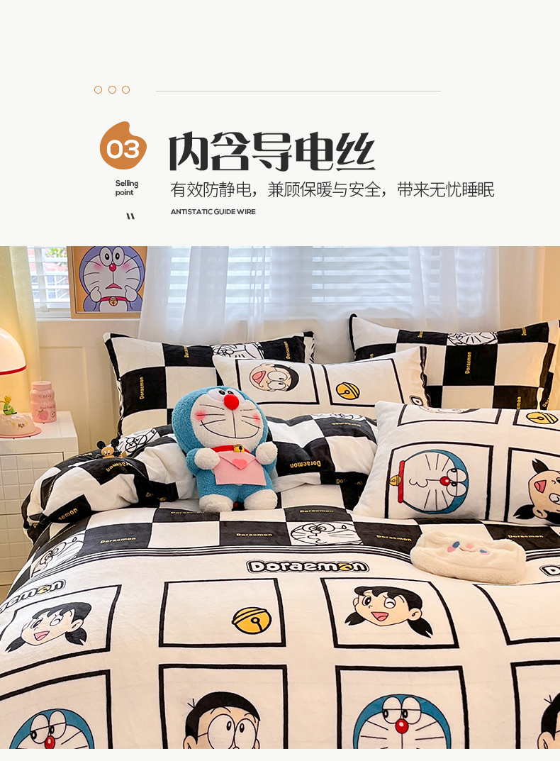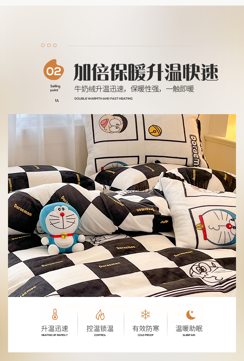 当前位置: 91家纺网 > 商品网购 > 床品套件 > 四件套 > 牛奶绒四件套 > 桃子家居 2023新款正版哆啦A梦叮当猫授权卡通加厚牛奶绒系列四件套 绒哆啦A梦-棋盘格叮当黑白