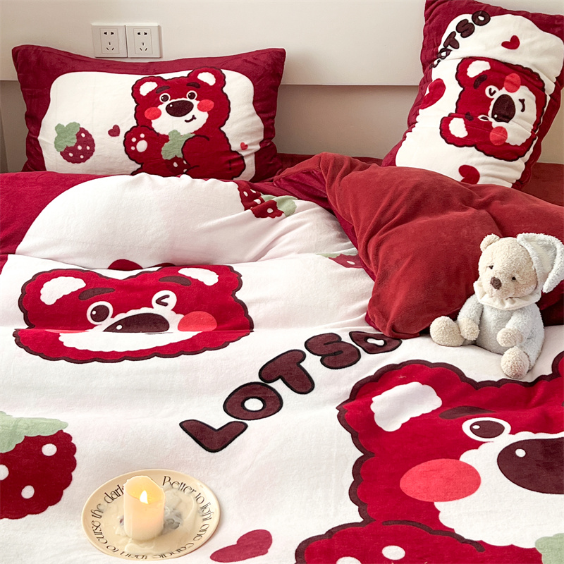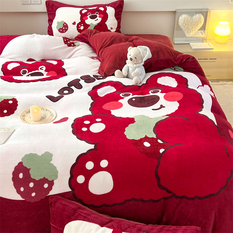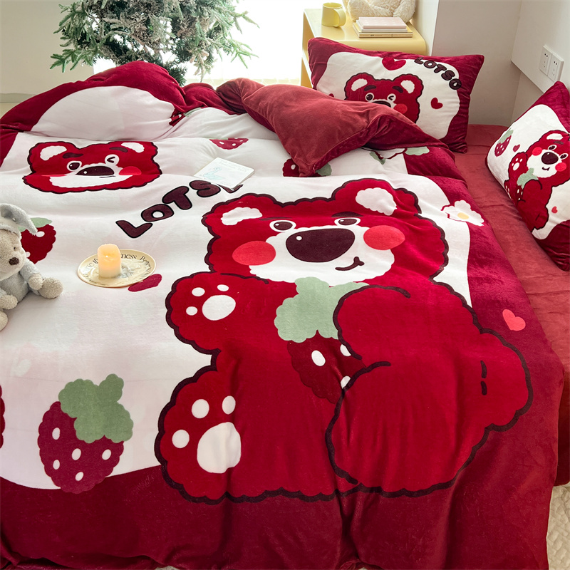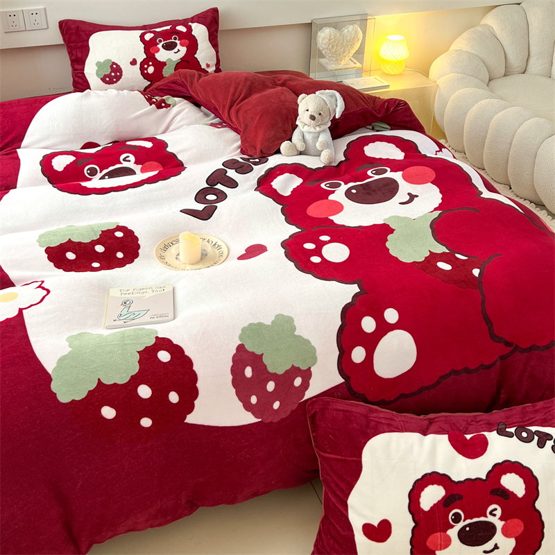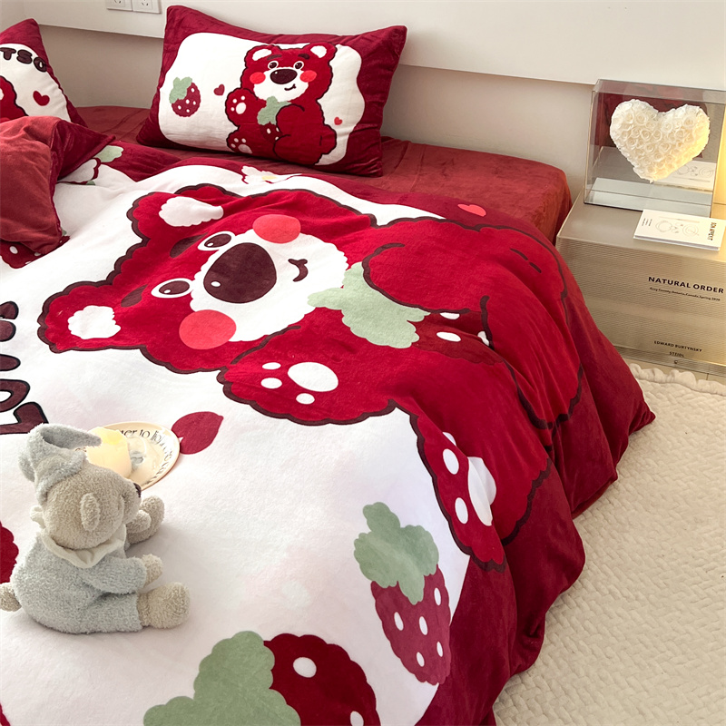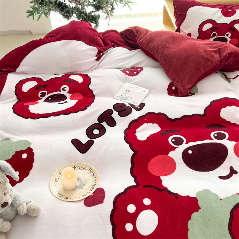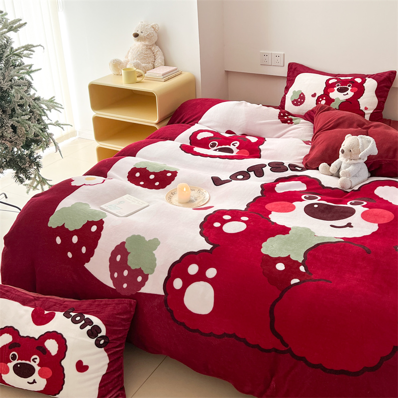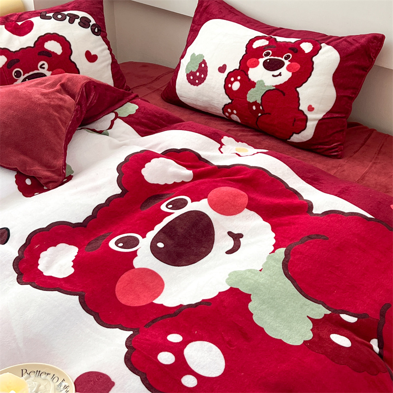 顾里家纺 2023新款大版宝宝绒套件-迪士尼款 草莓红熊