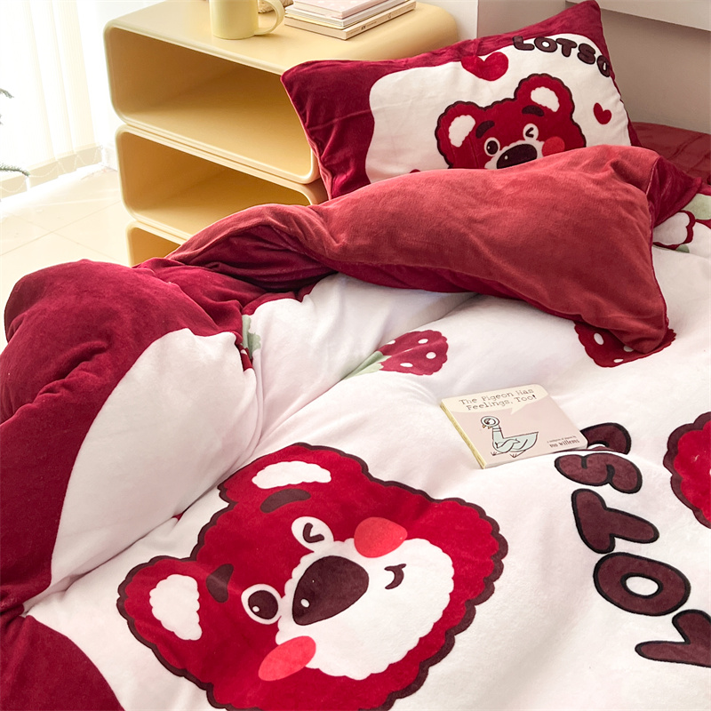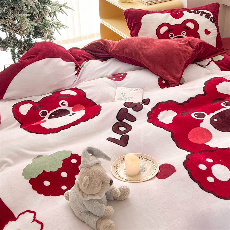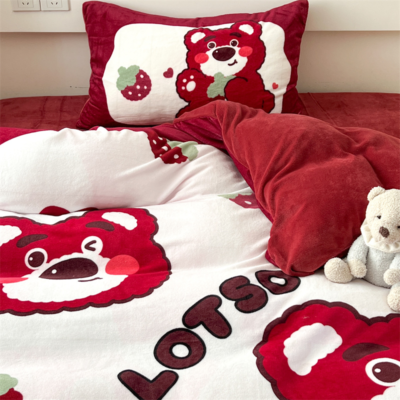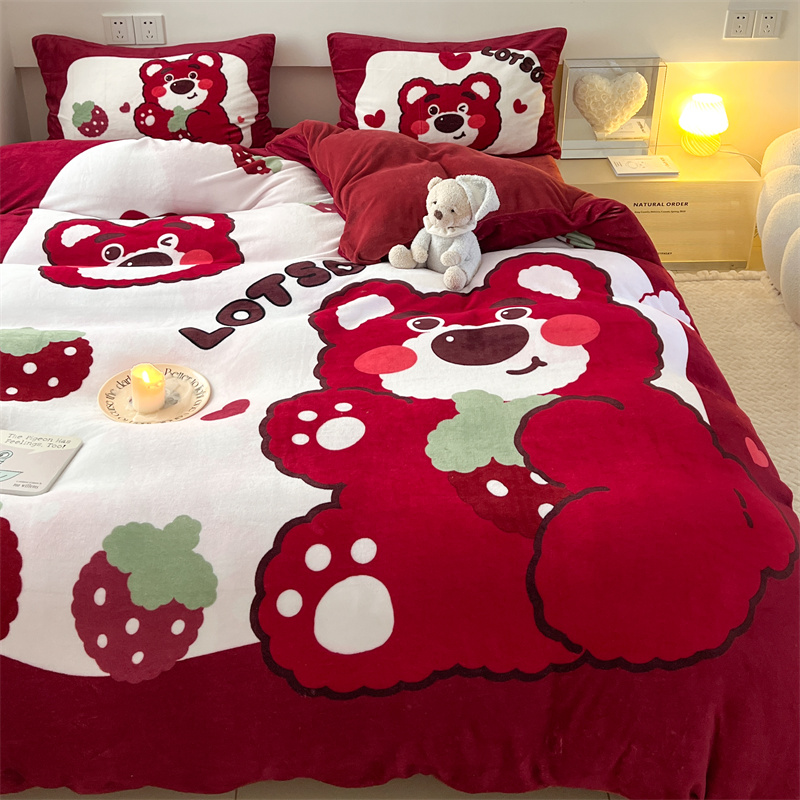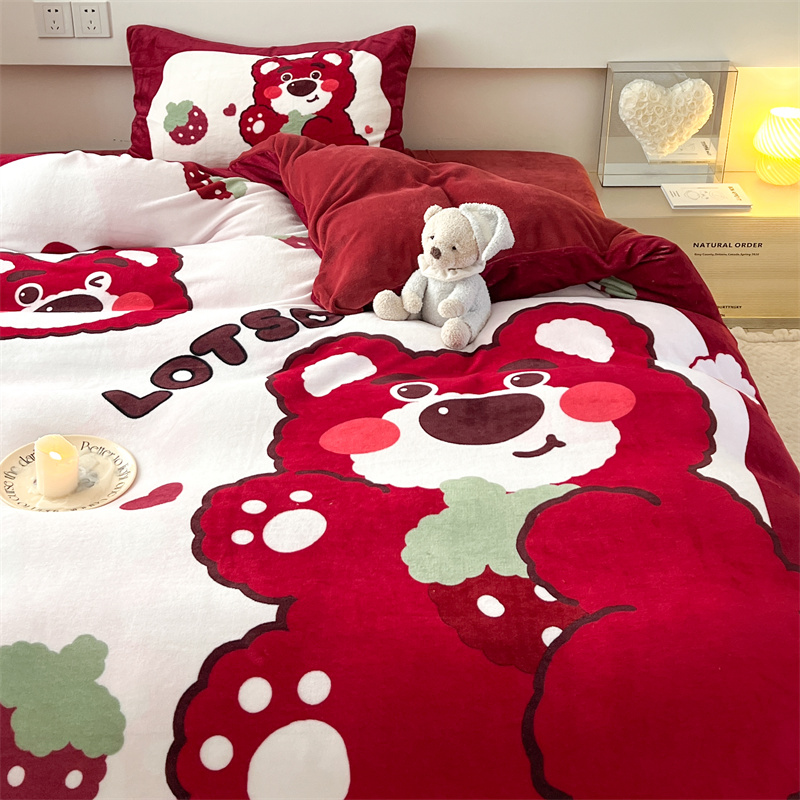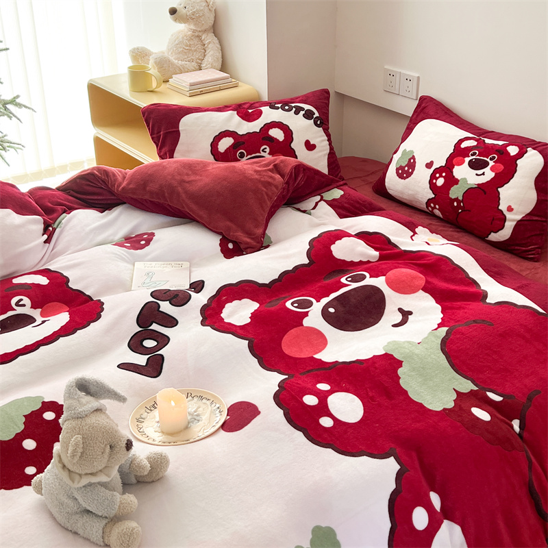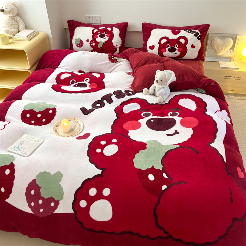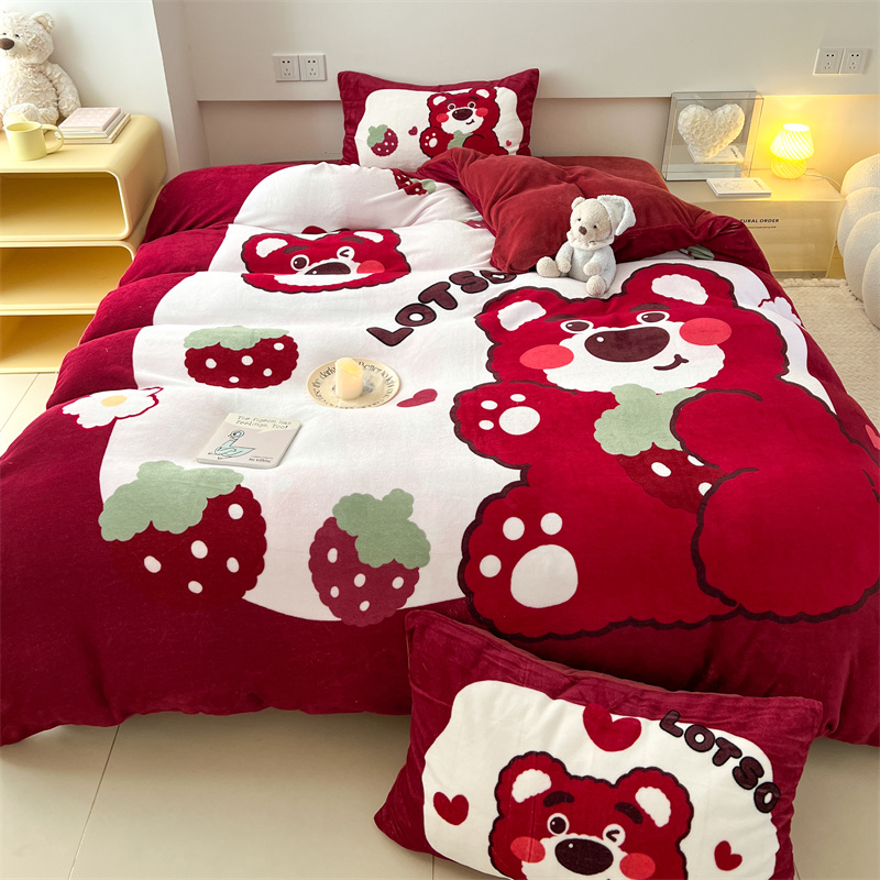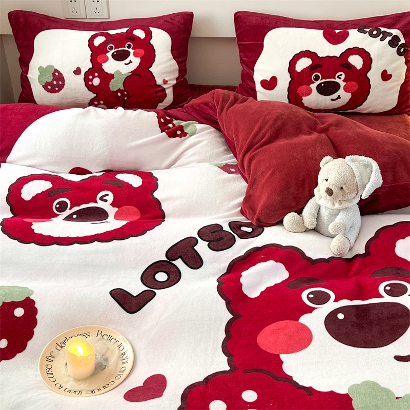 顾里家纺 2023新款大版宝宝绒套件-迪士尼款 草莓红熊