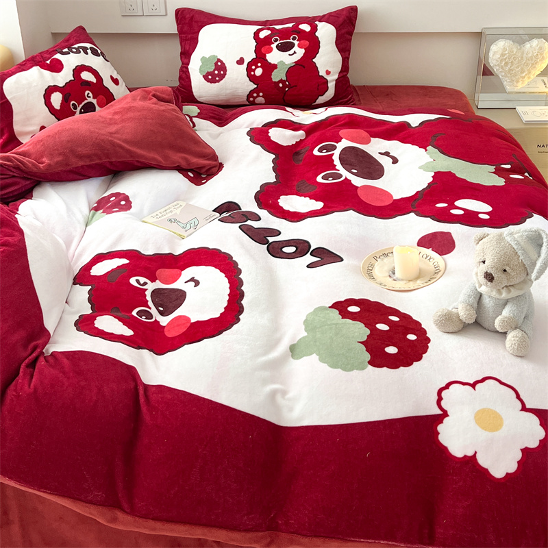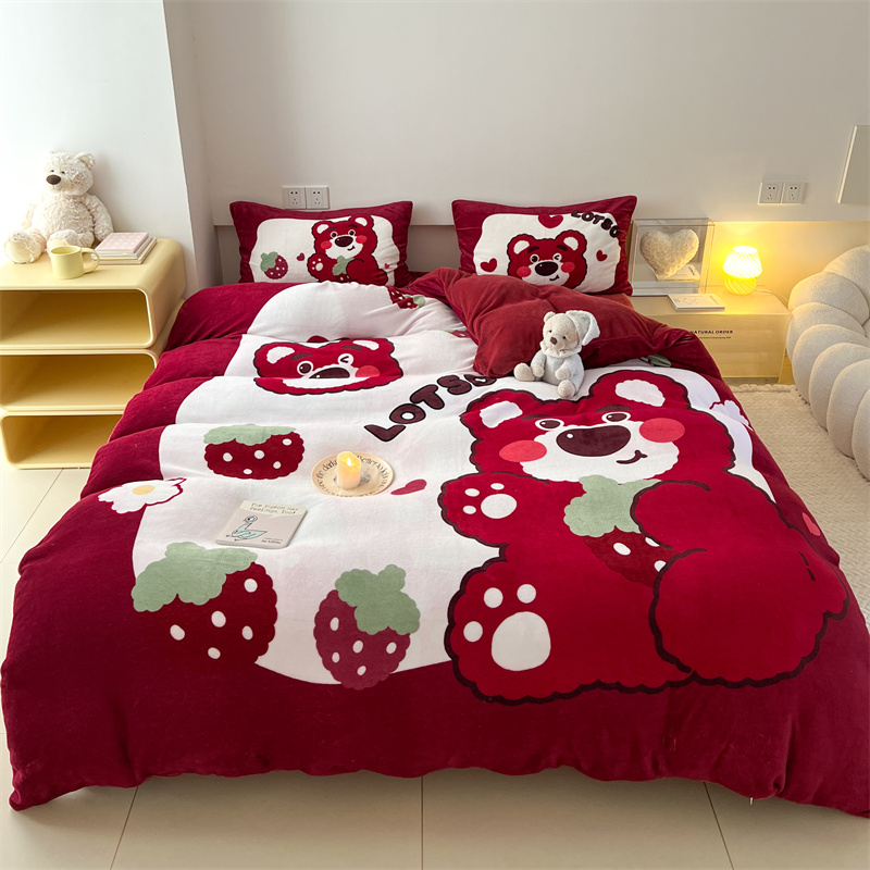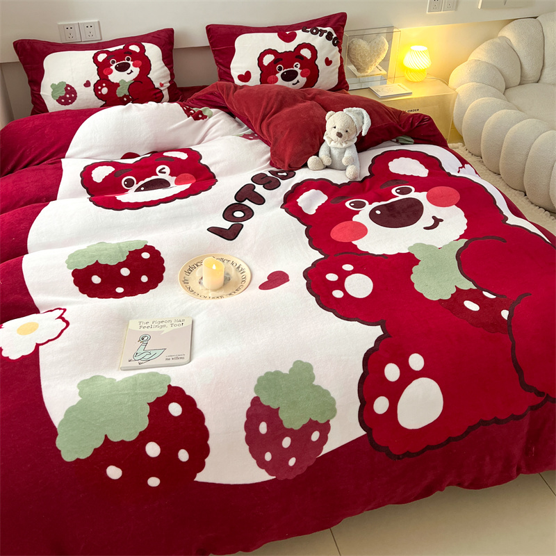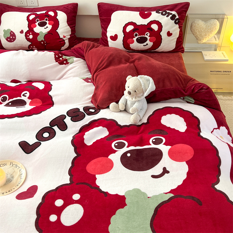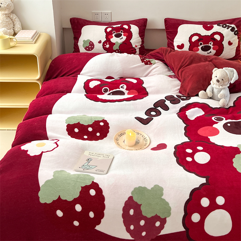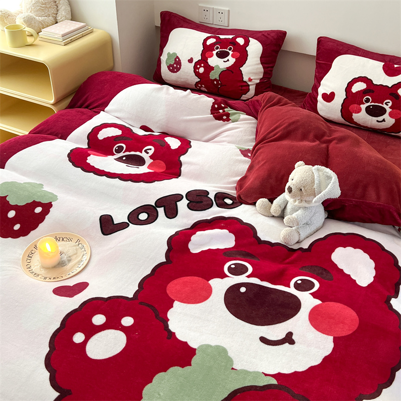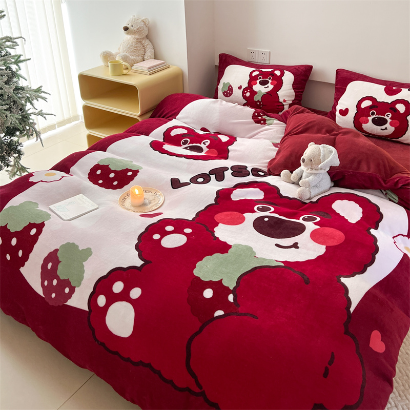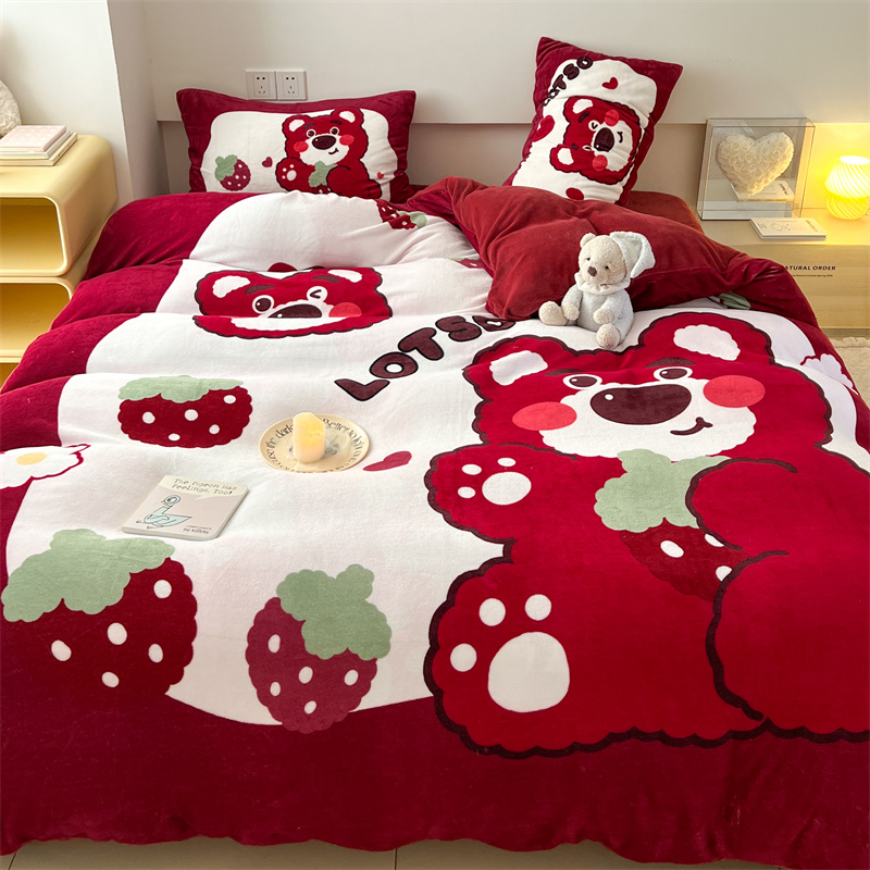 顾里家纺 2023新款大版宝宝绒套件-迪士尼款 草莓红熊