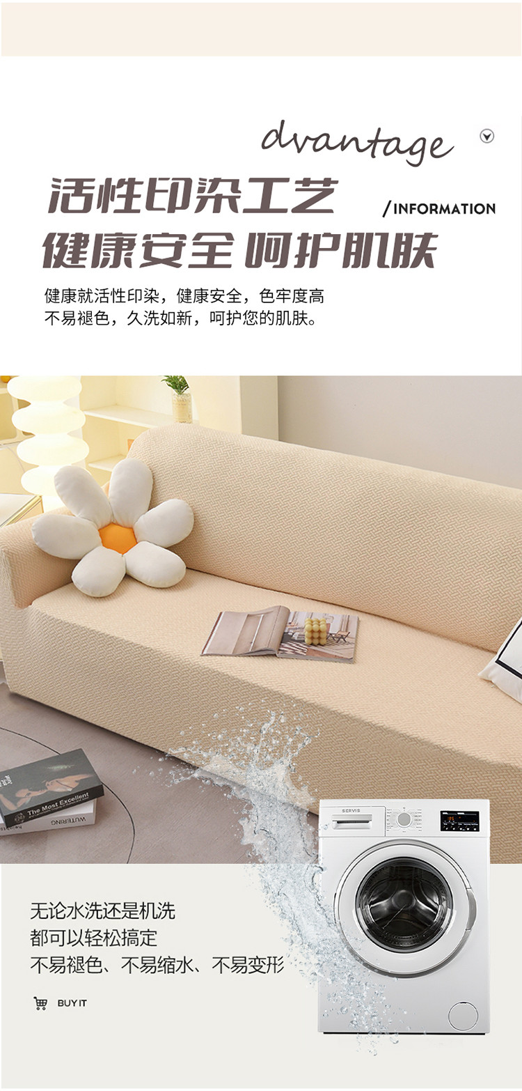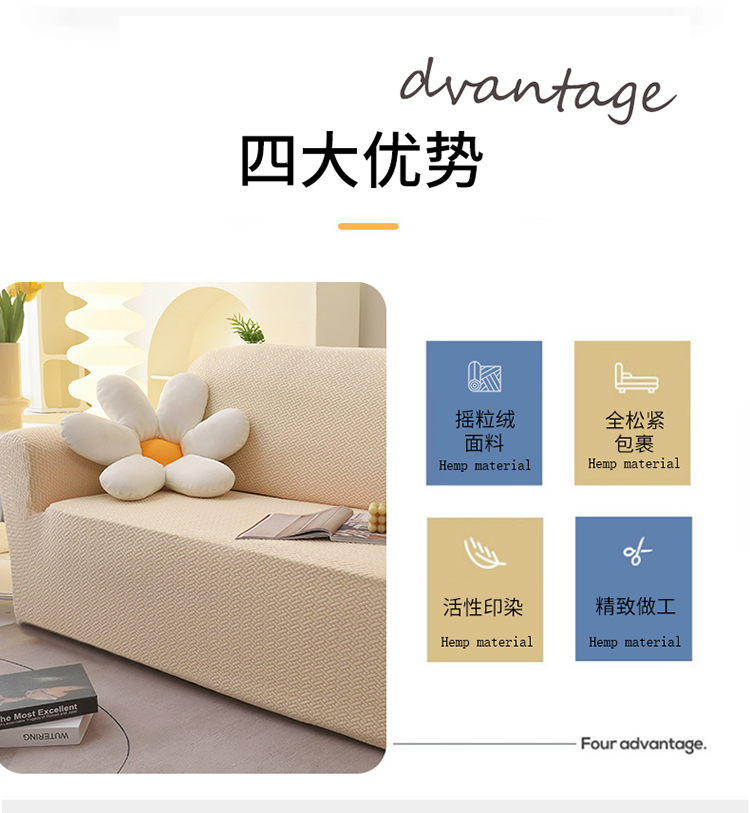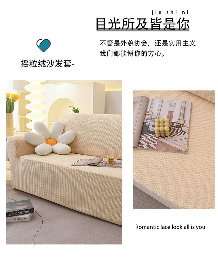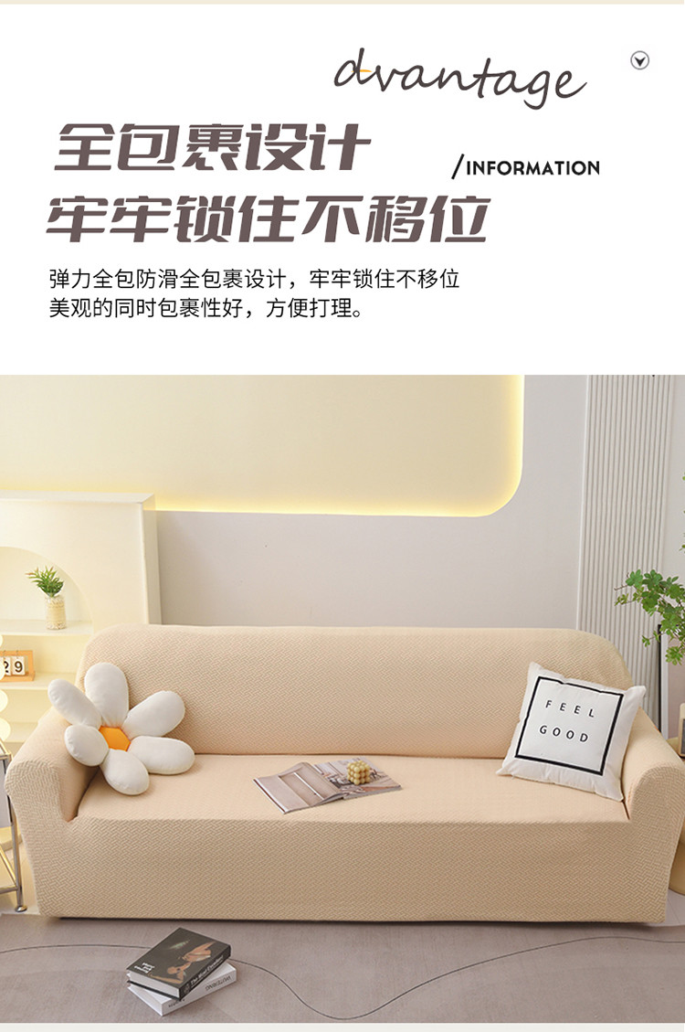天下布艺 2023新款摇粒绒沙发套斜格 斜格米色