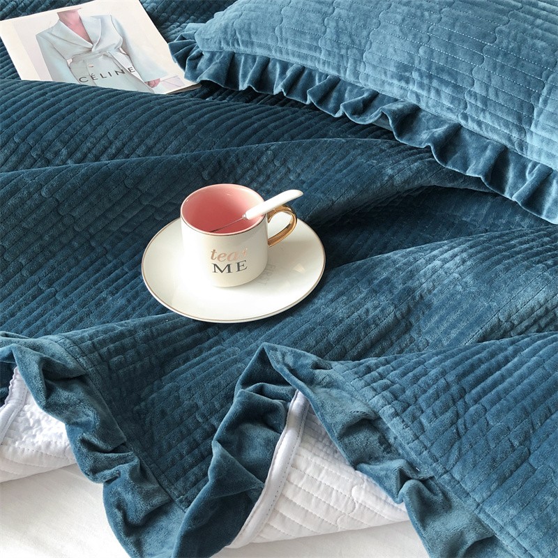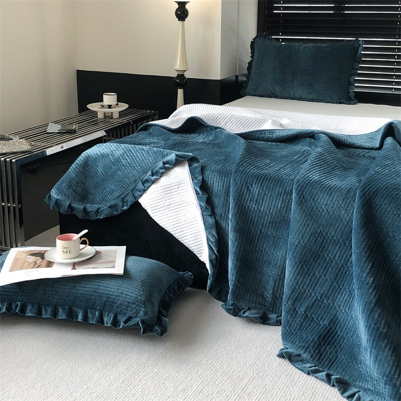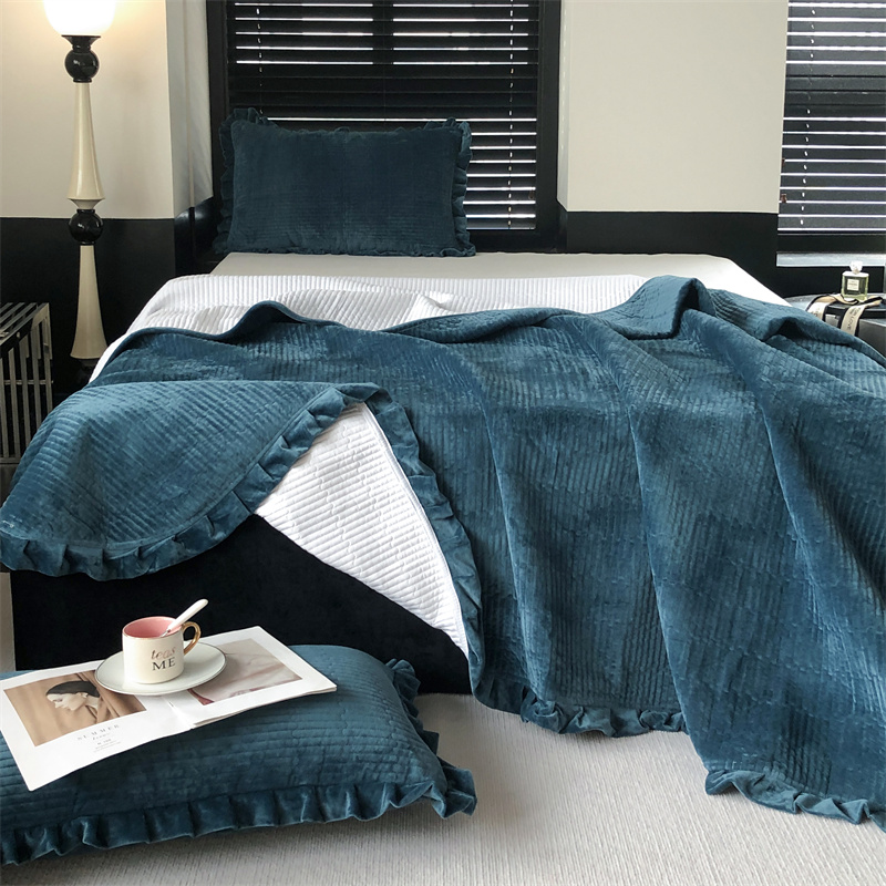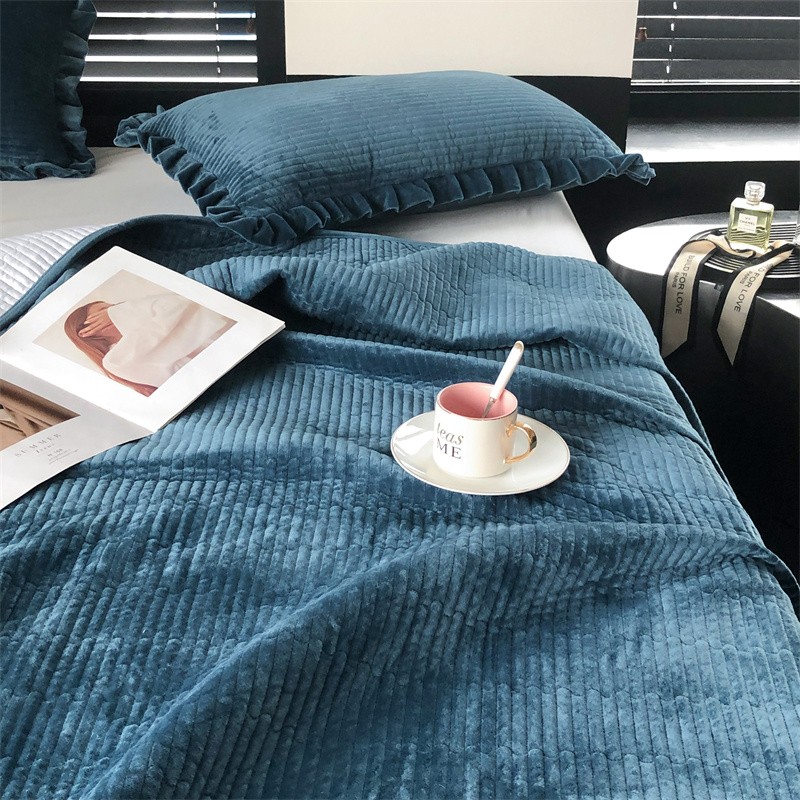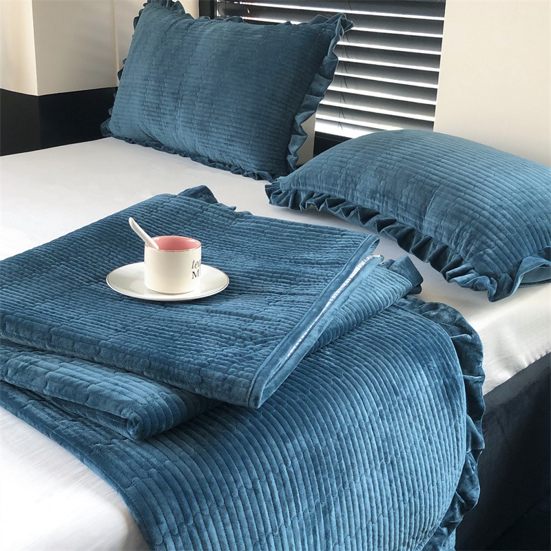 时亿 2023新款全消260克婴肤绒床盖三件套 明蓝