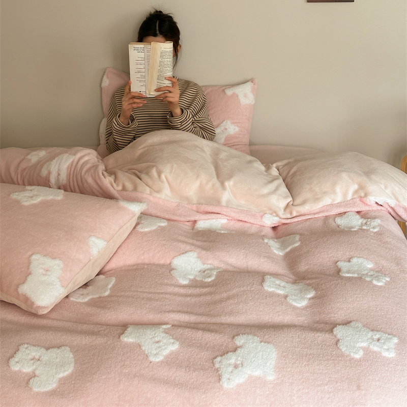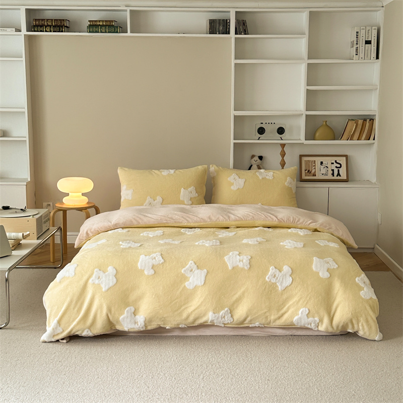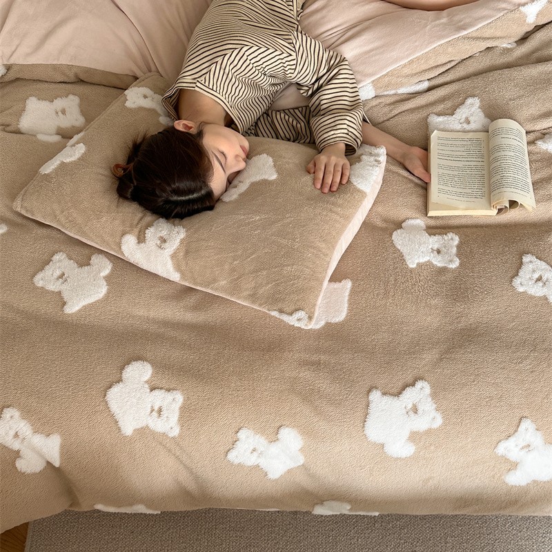 (总) 棉眠 2023新款冬日熊提花牛奶绒系列四件套