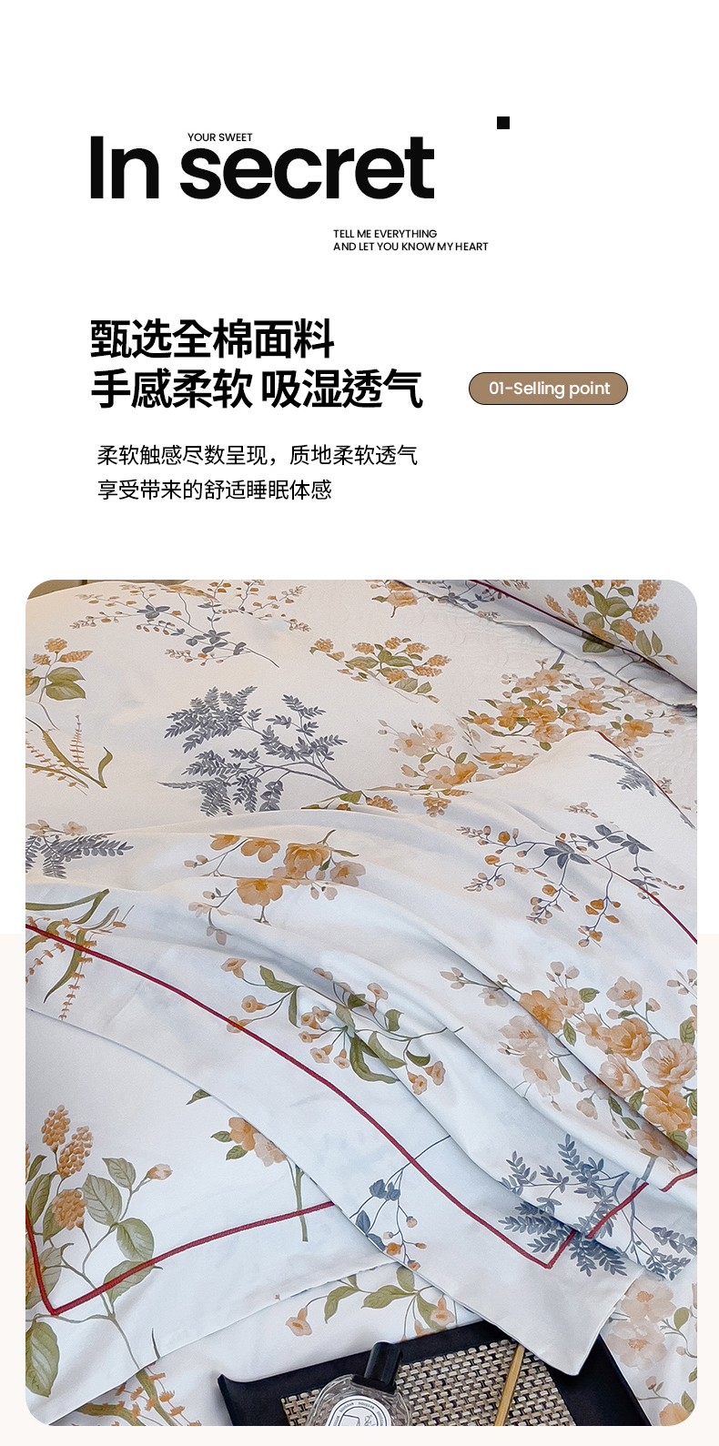 当前位置: 91家纺网 > 商品网购 > 床品套件 > 四件套 > 全棉普通四件套 > 小时代 2023新款全棉印花床盖四件套 如梦花季