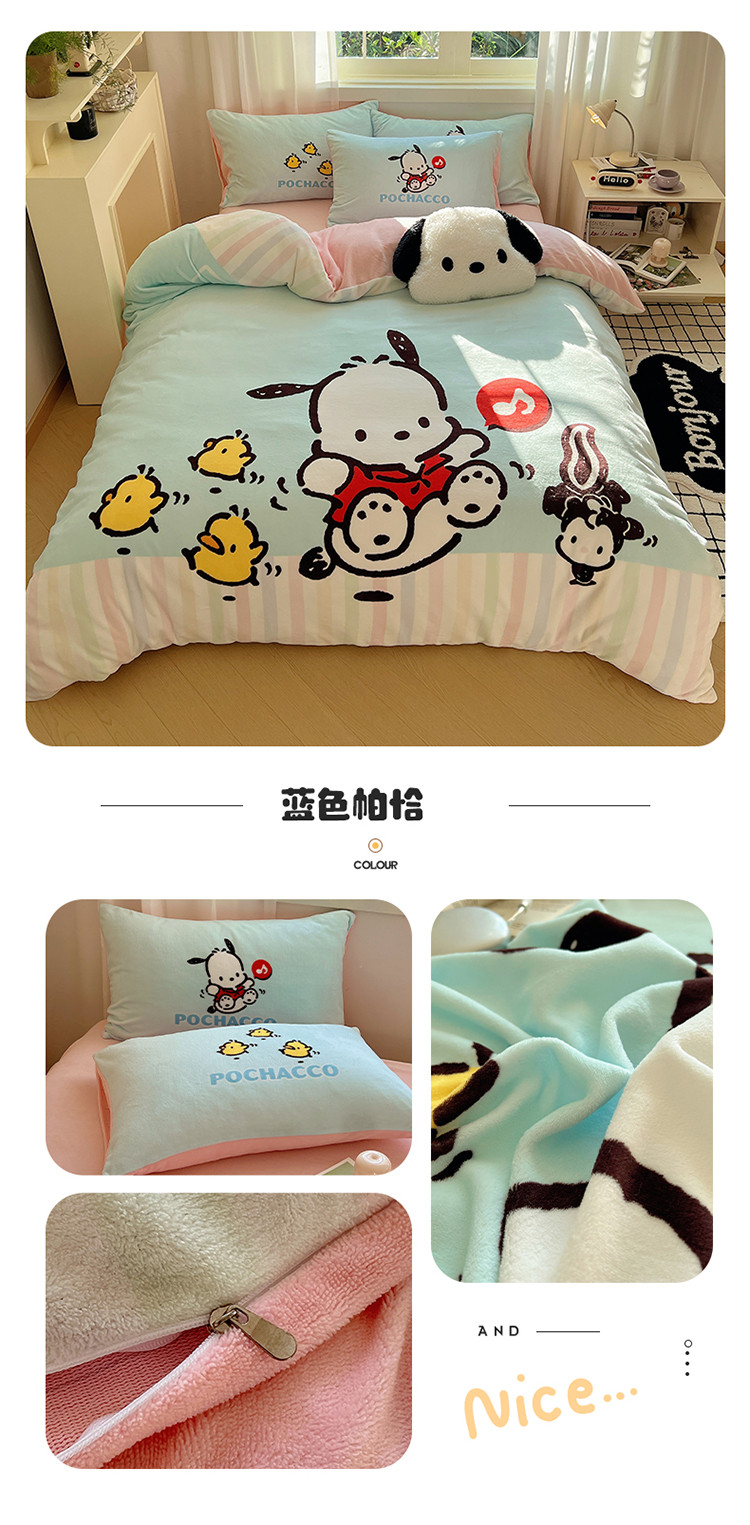 商品名称:三朵 2023新款三丽鸥牛奶绒数码印花大版系列四件套 蓝色帕恰