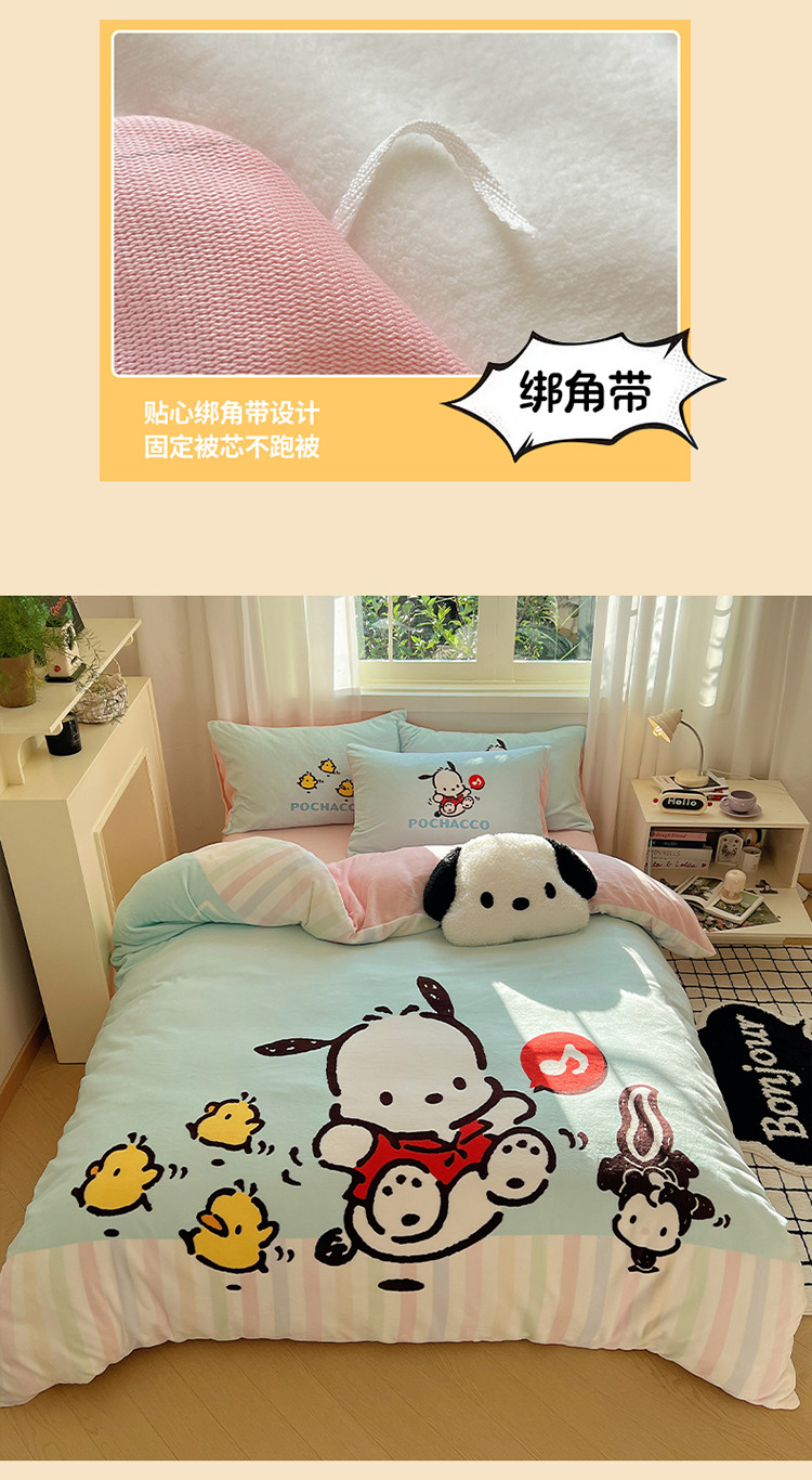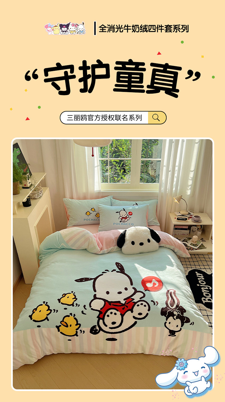 (总)三朵家纺 2024新款全消光三丽鸥印花牛奶绒系列四件套,爱心凯蒂,街舞库洛米,凯蒂公主,乐园KT,漫画帕恰,美好帕恰,美乐蒂格格,淘气帕恰,甜蜜公主KT,童心帕恰,艺术家库洛米,运动帕恰,字母帕恰