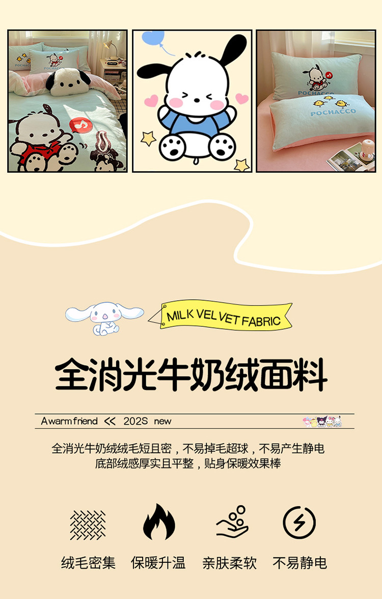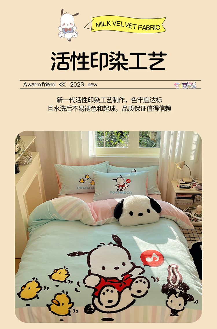 (总)三朵家纺 2024新款数码大版牛奶绒印花三丽鸥系列四件套,冰激凌KT,粉红KT,滑板玉桂狗,库洛米幻影,快乐帕恰,蓝色帕恰,美好KT,萌萌玉桂狗,奶油KT,帕恰伙伴,少女美乐蒂,天使库洛米,甜蜜帕恰