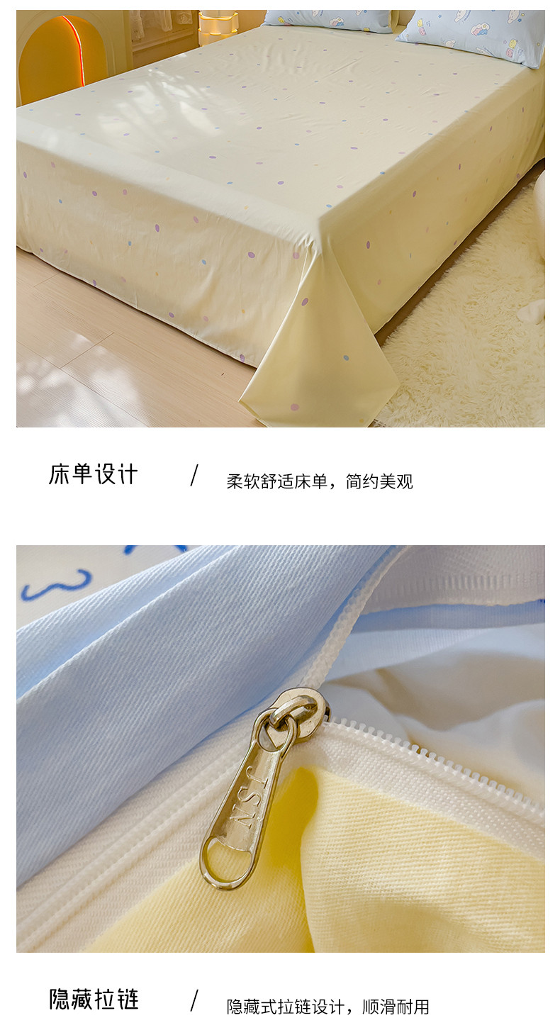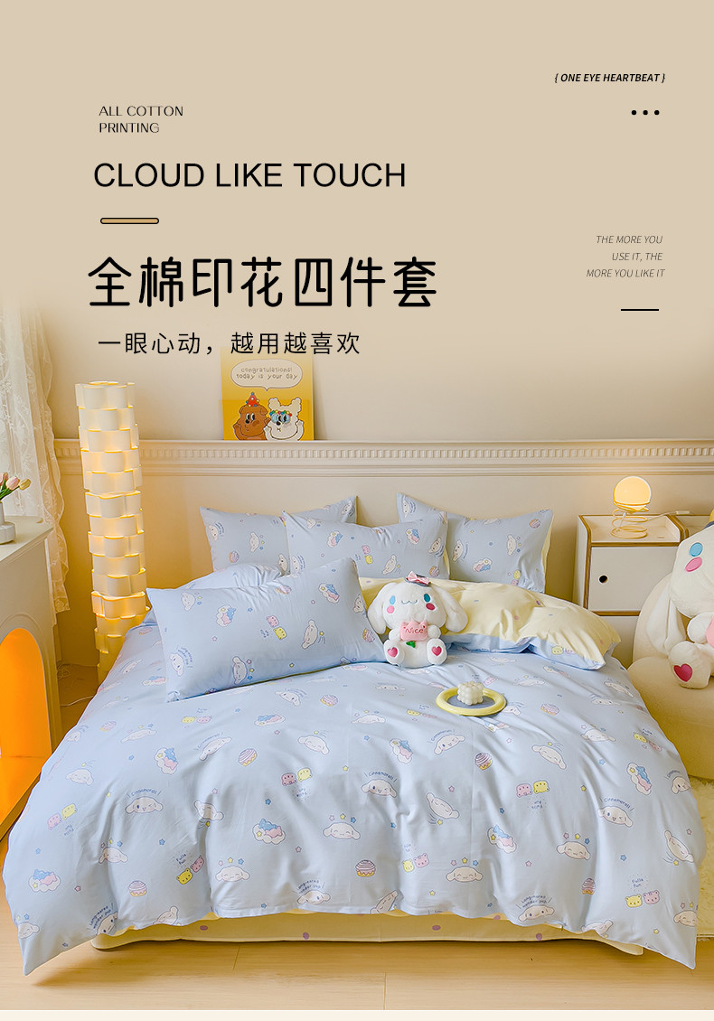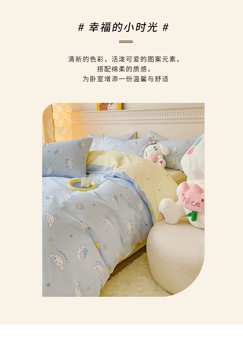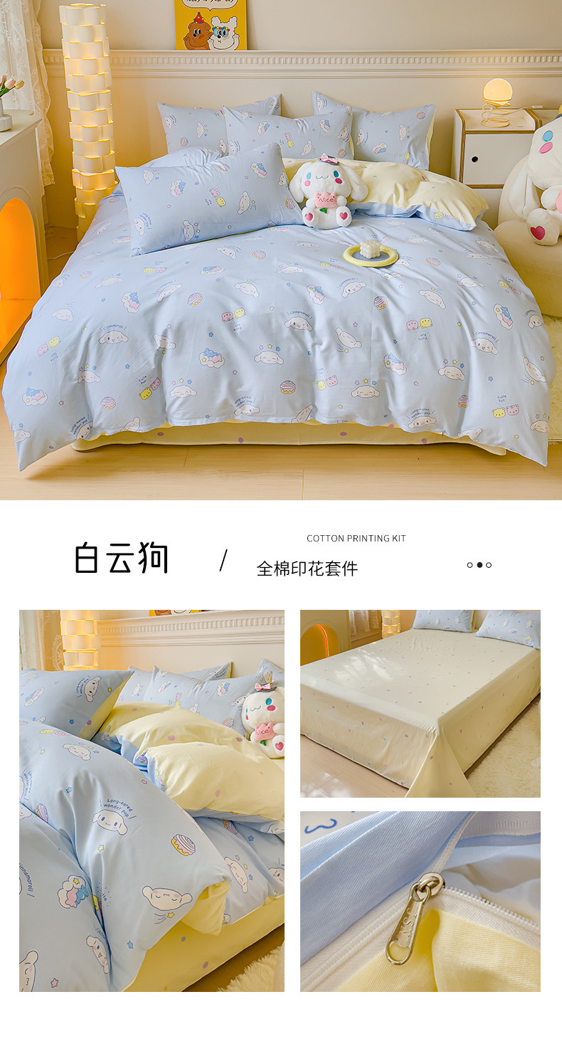 当前位置: 91家纺网 > 商品网购 > 床品套件 > 四件套 > 全棉普通四件套 > 金丝鸟家纺 2023新款全棉印花三利欧库洛米系列四件套 白云狗