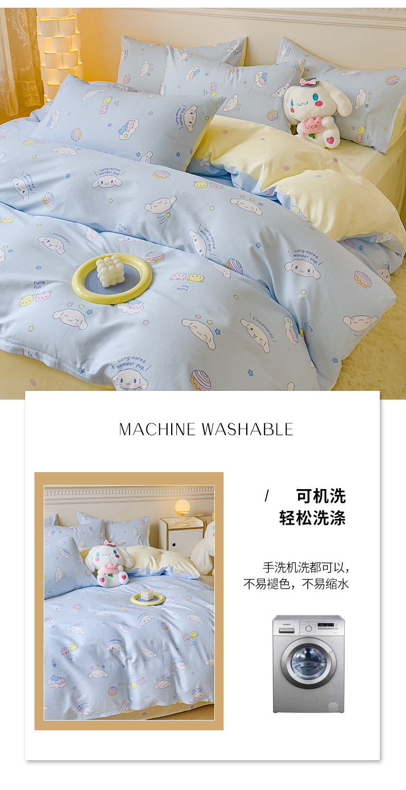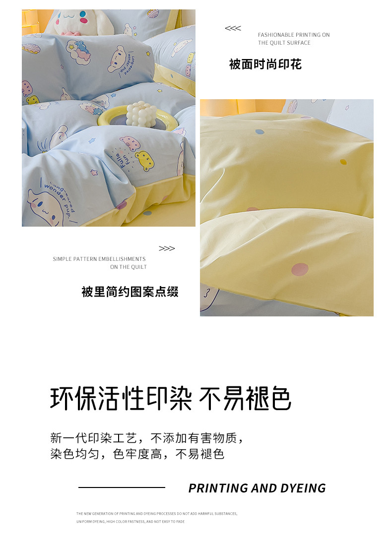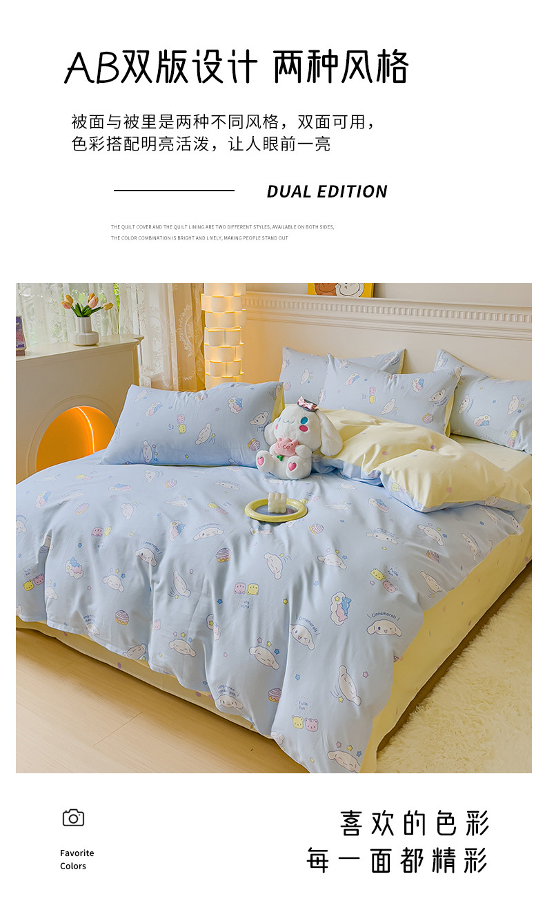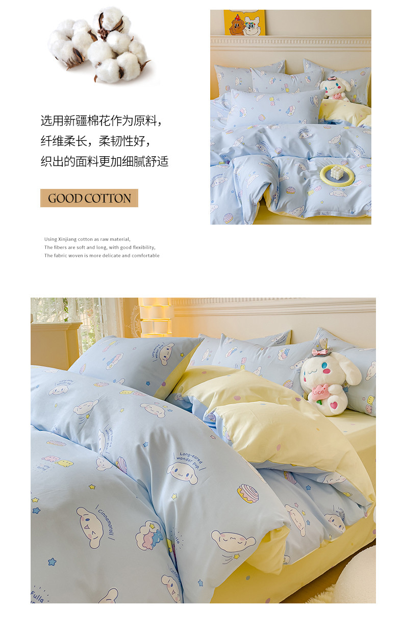 当前位置: 91家纺网 > 商品网购 > 床品套件 > 四件套 > 全棉普通四件套 > 金丝鸟家纺 2023新款全棉印花三利欧库洛米系列四件套 白云狗