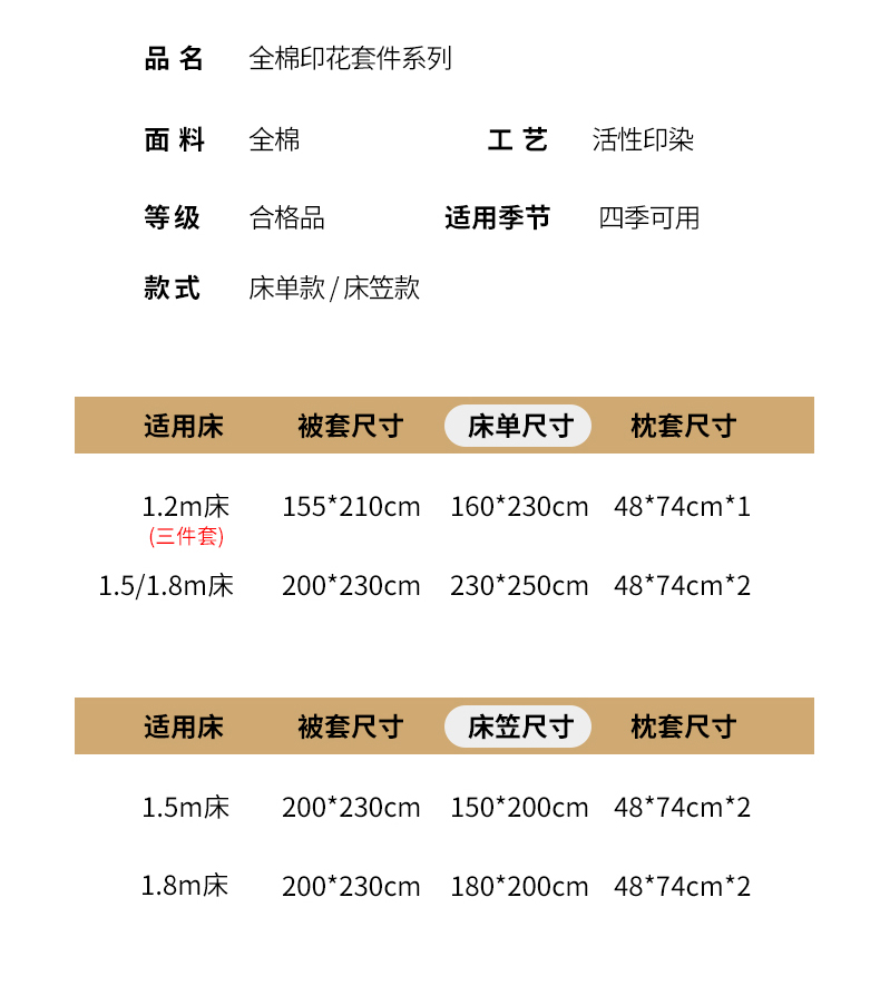 1.2m床单款三件套 | ¥95.00 |
