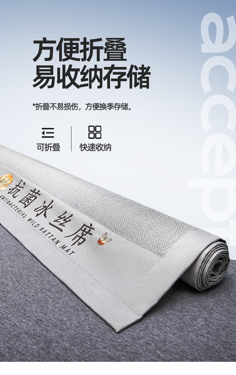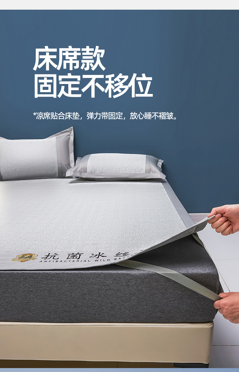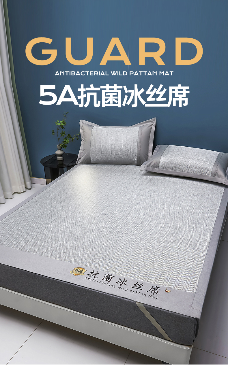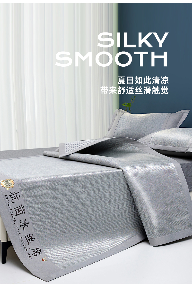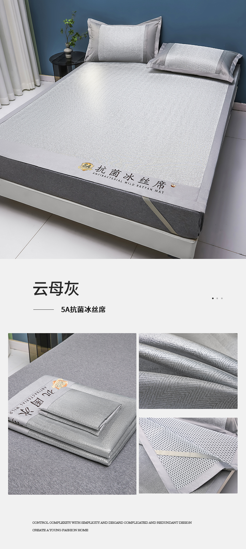 商品名称:鑫姿席业 2025新款5A抗菌冰丝凉席系列 云母灰(凉席款)