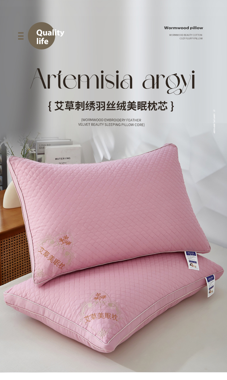 (总)大熊枕芯 2023新款艾草刺绣羽丝绒美眠枕芯枕头枕芯