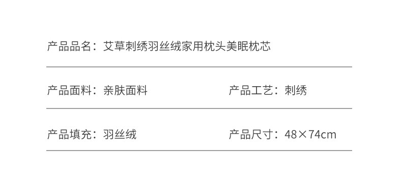 商品名称:(总)大熊枕芯 2023新款艾草刺绣羽丝绒美眠枕芯枕头枕芯