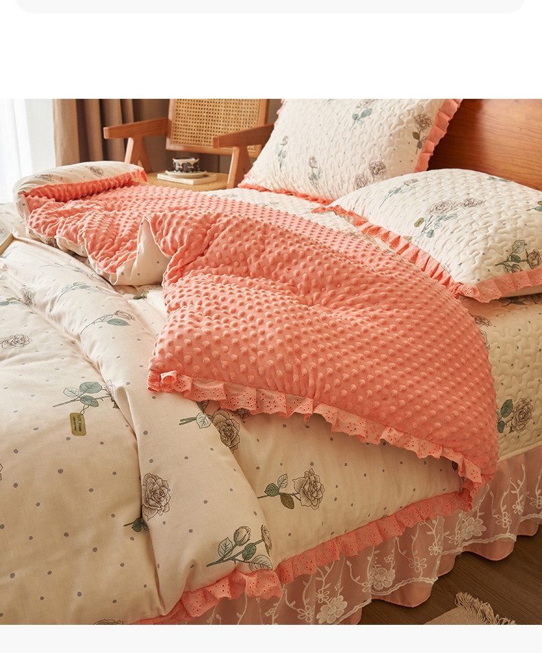 (总)恒爱 2022秋冬水晶绒翩翩花舞夹棉床裙四件套,大红色,豆沙红,橄榄绿,公主粉,桔色,咖啡色,孔雀绿,拉菲红,罗兰紫,玫红色,美人玉,米白色,米驼色,抹茶绿,浅灰色,紫色