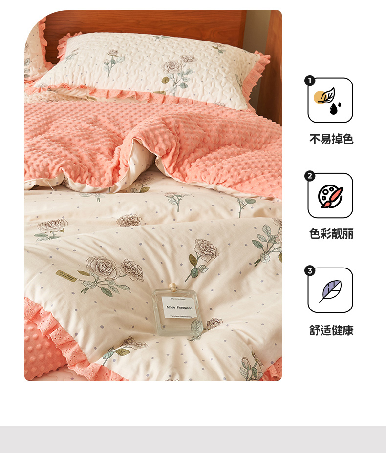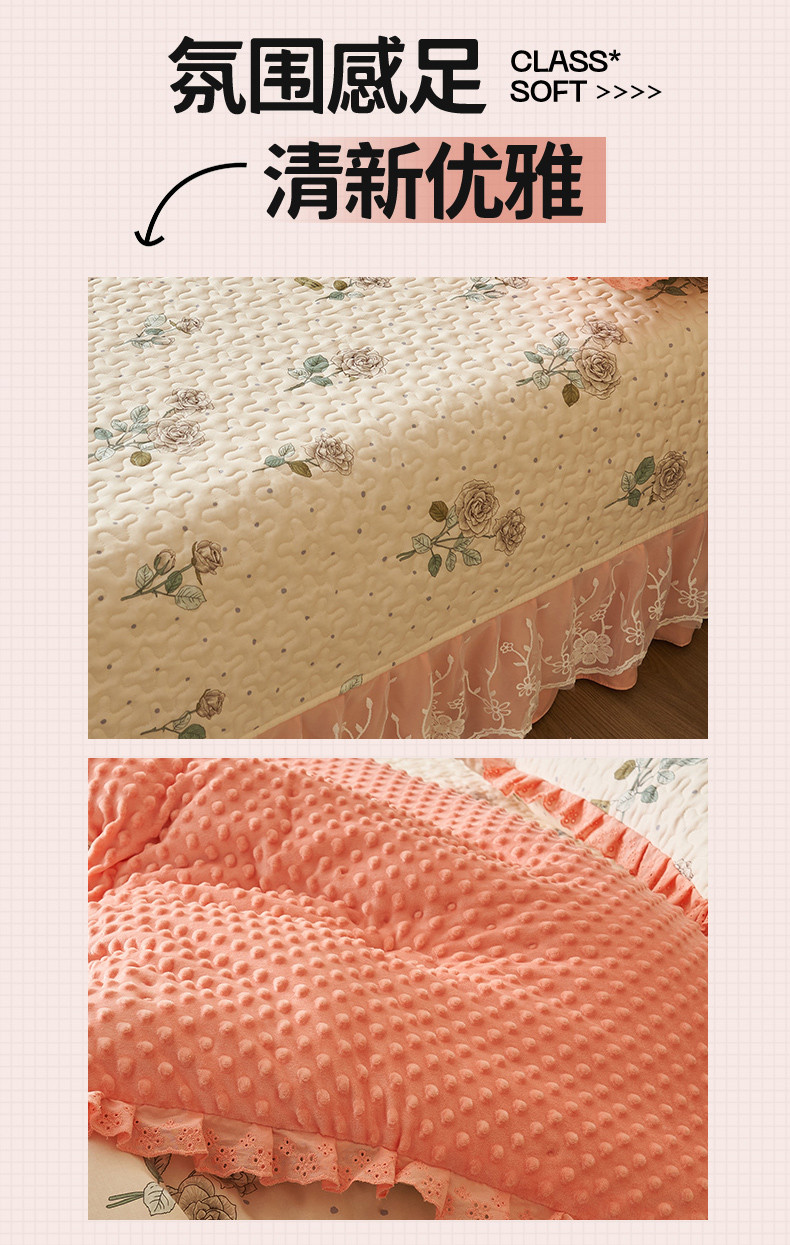 (总)恒爱 2022秋冬水晶绒翩翩花舞夹棉单床裙,大红色,豆沙红,橄榄绿,公主粉,桔色,咖啡色,孔雀绿,拉菲红,罗兰紫,玫红色,美人玉,米白色,米驼色,抹茶绿,浅灰色,紫色