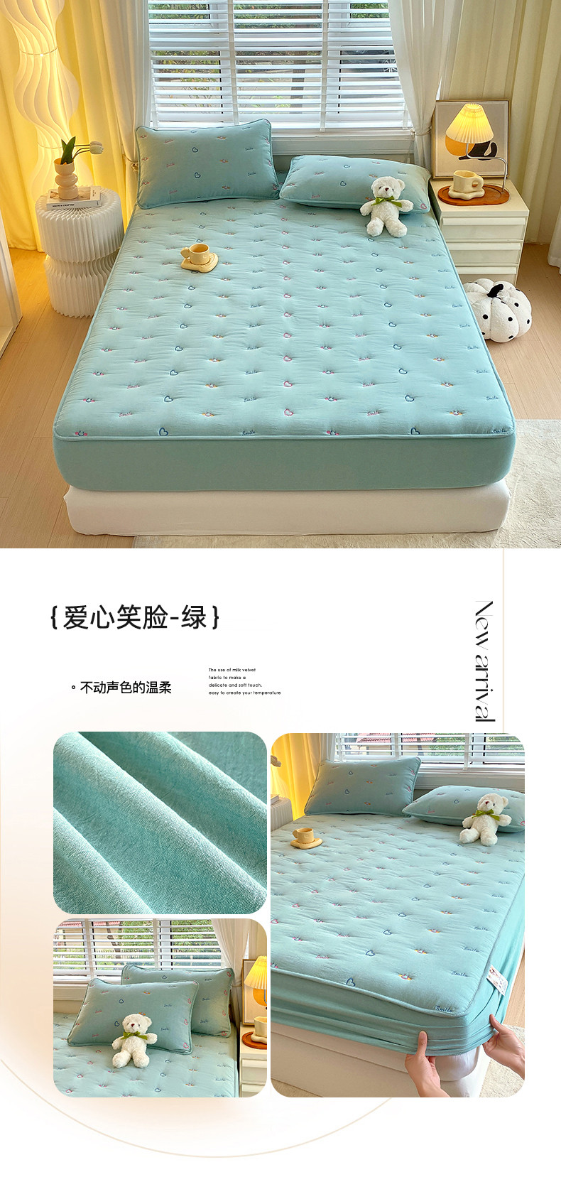 尊康家纺(原磊科) 2024新款全棉色织夹棉大豆床笠-爱心笑脸 爱心笑脸-绿