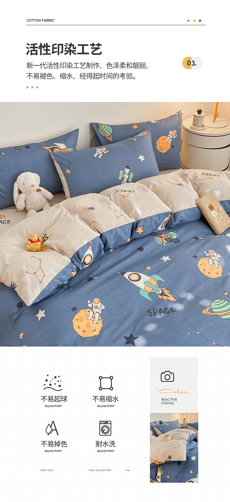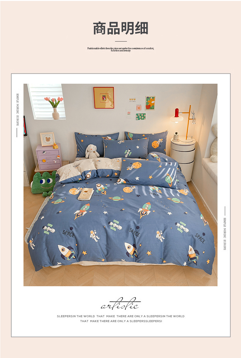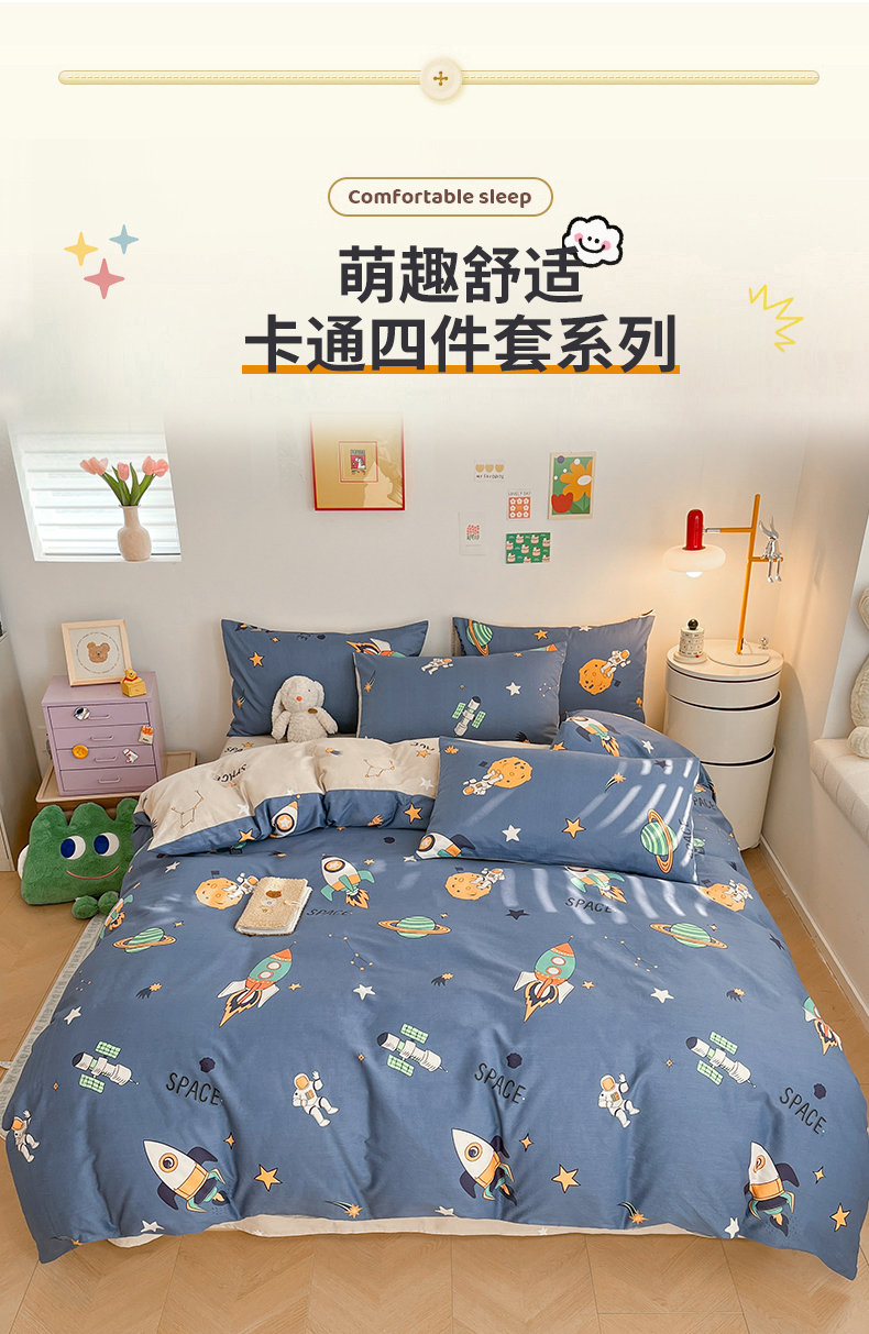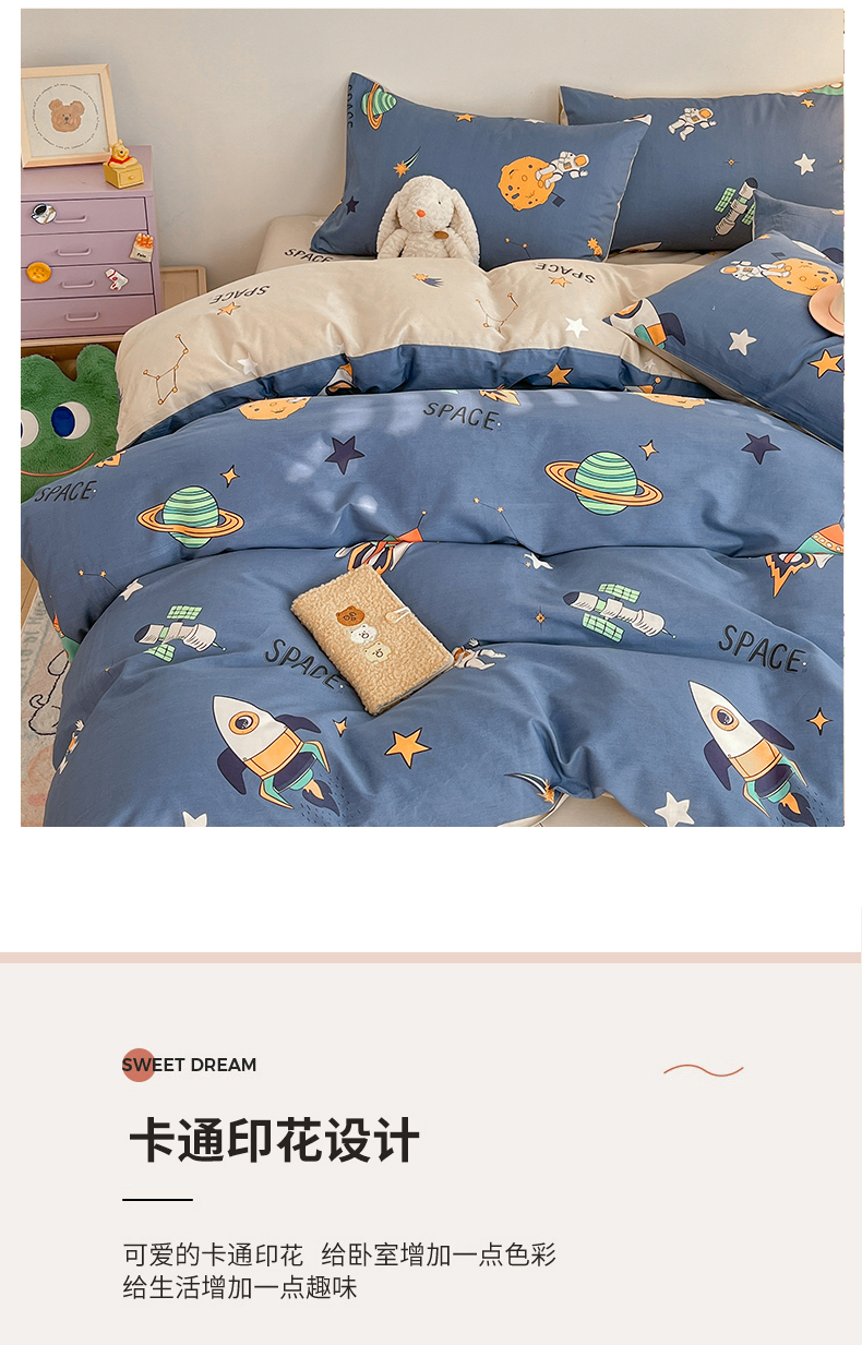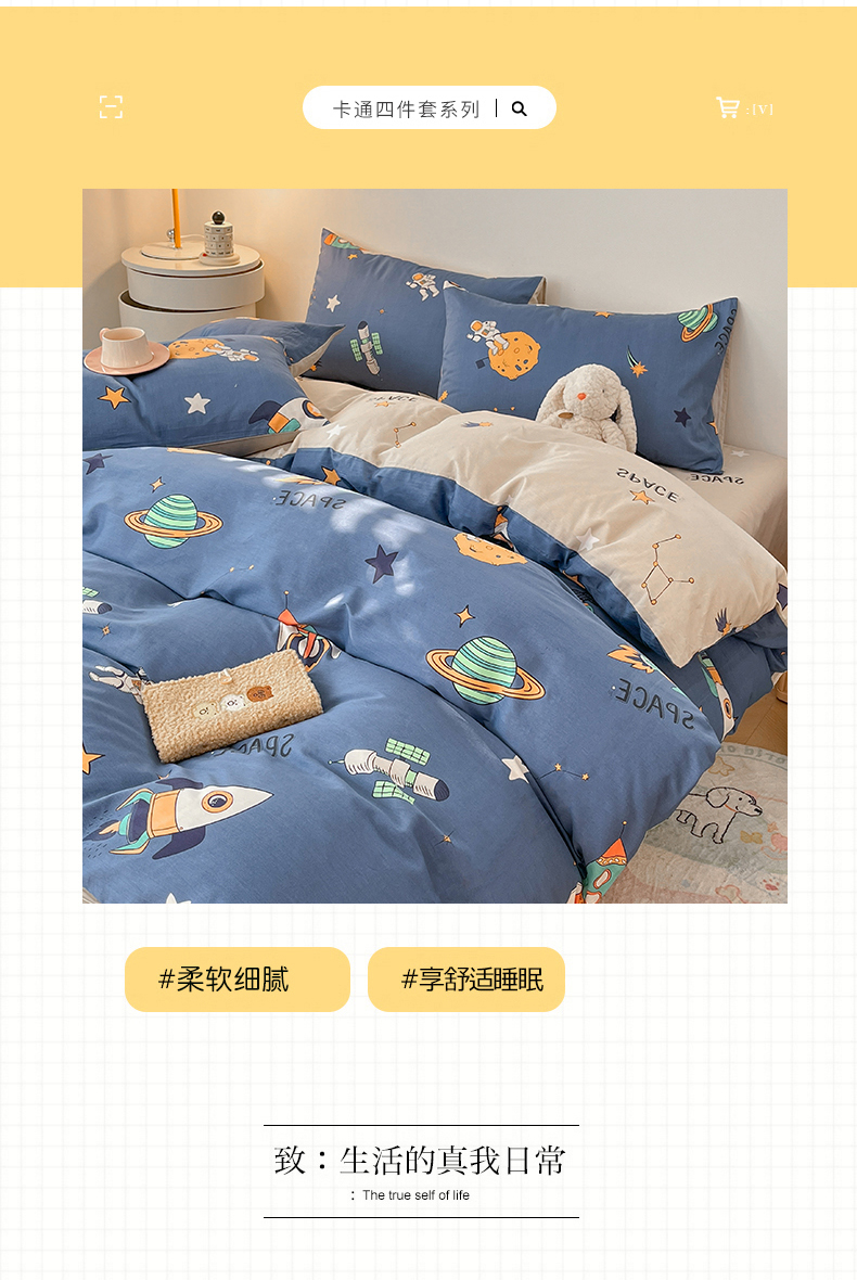 当前位置: 91家纺网 > 商品网购 > 床品套件 > 四件套 > 全棉普通四件套 > 吉象家纺 2024新款全棉印花卡通四件套系列 环游太空