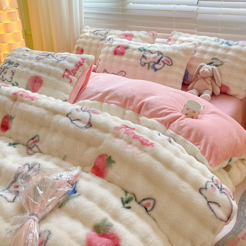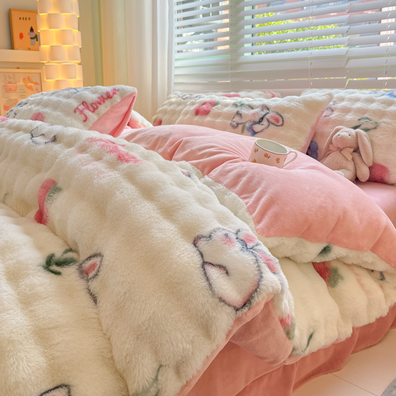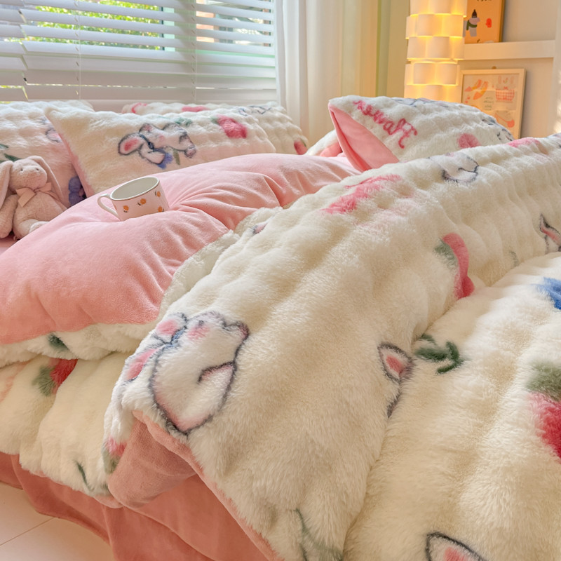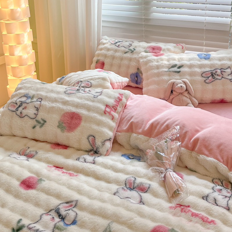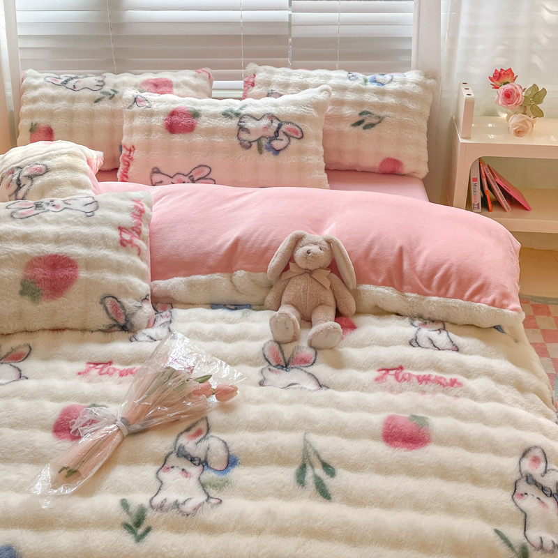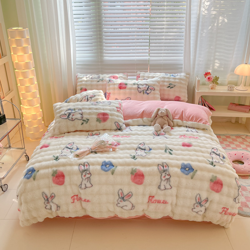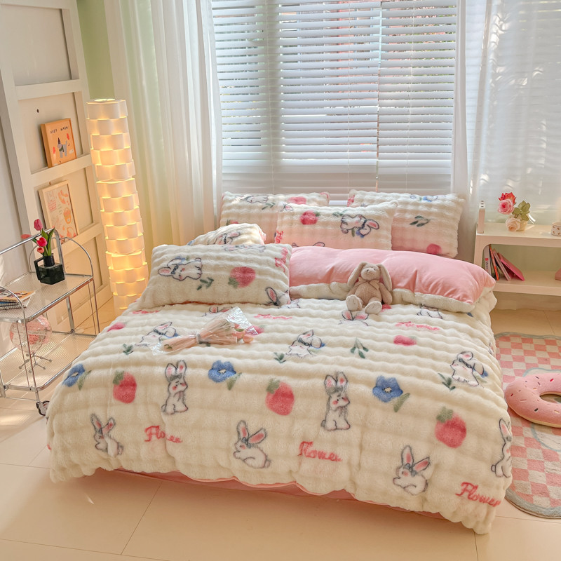 商品名称:爱家(原缔乐家纺) 2024新款卡通印花兔绒四件套 可爱兔