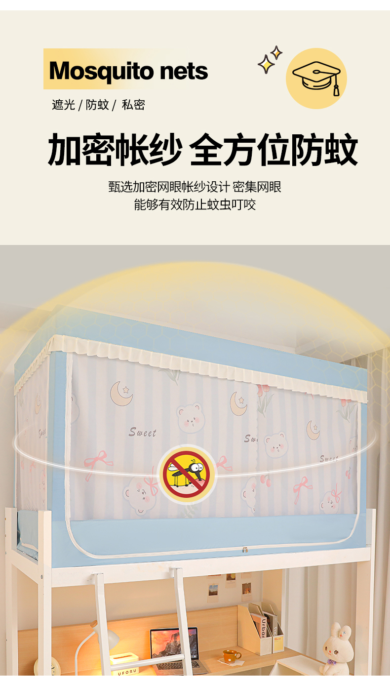 当前位置: 91家纺网 > 商品网购 > 床上用品 > 蚊帐 > 学生蚊帐 > 世婕 2025新款强遮光四季通用学生窗帘式蚊帐 初夏-宝贝熊