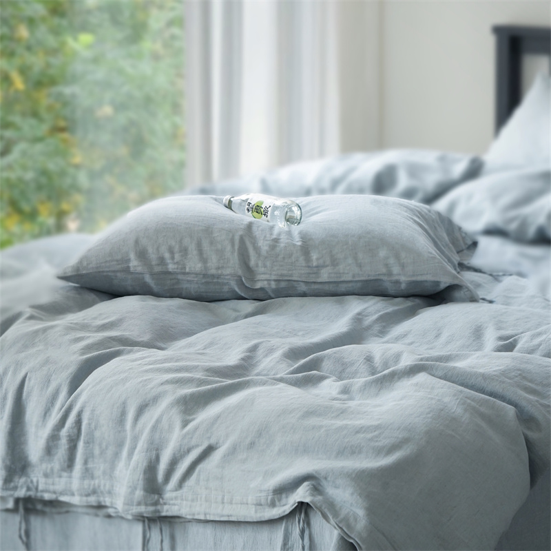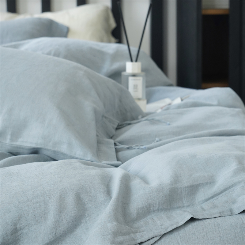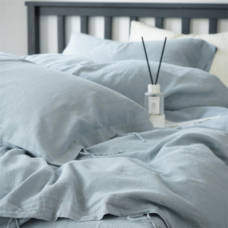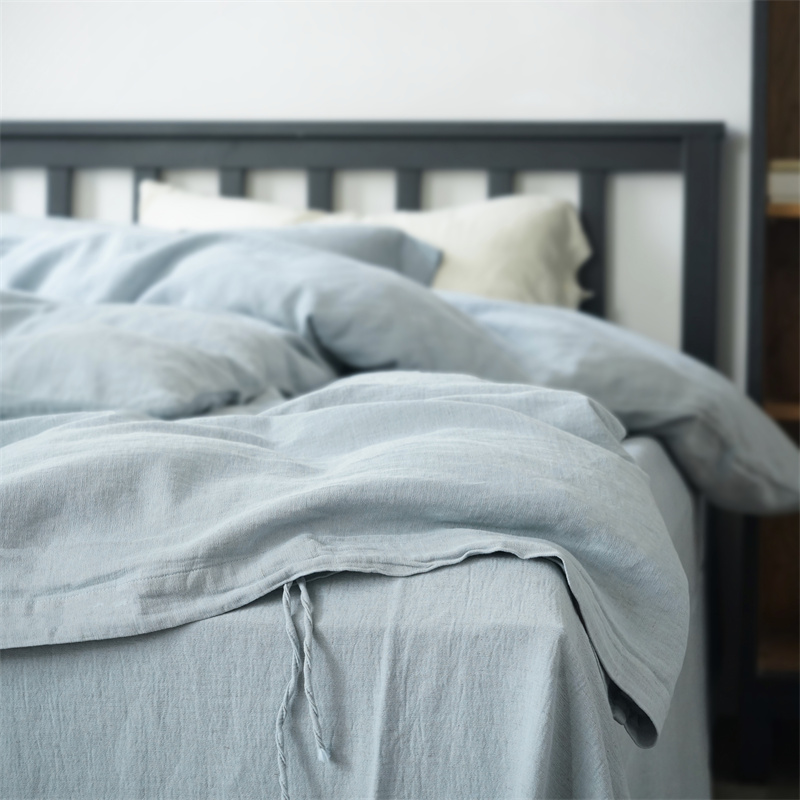 子和家居 2024新款棉麻系带款四件套 蓝色棉麻