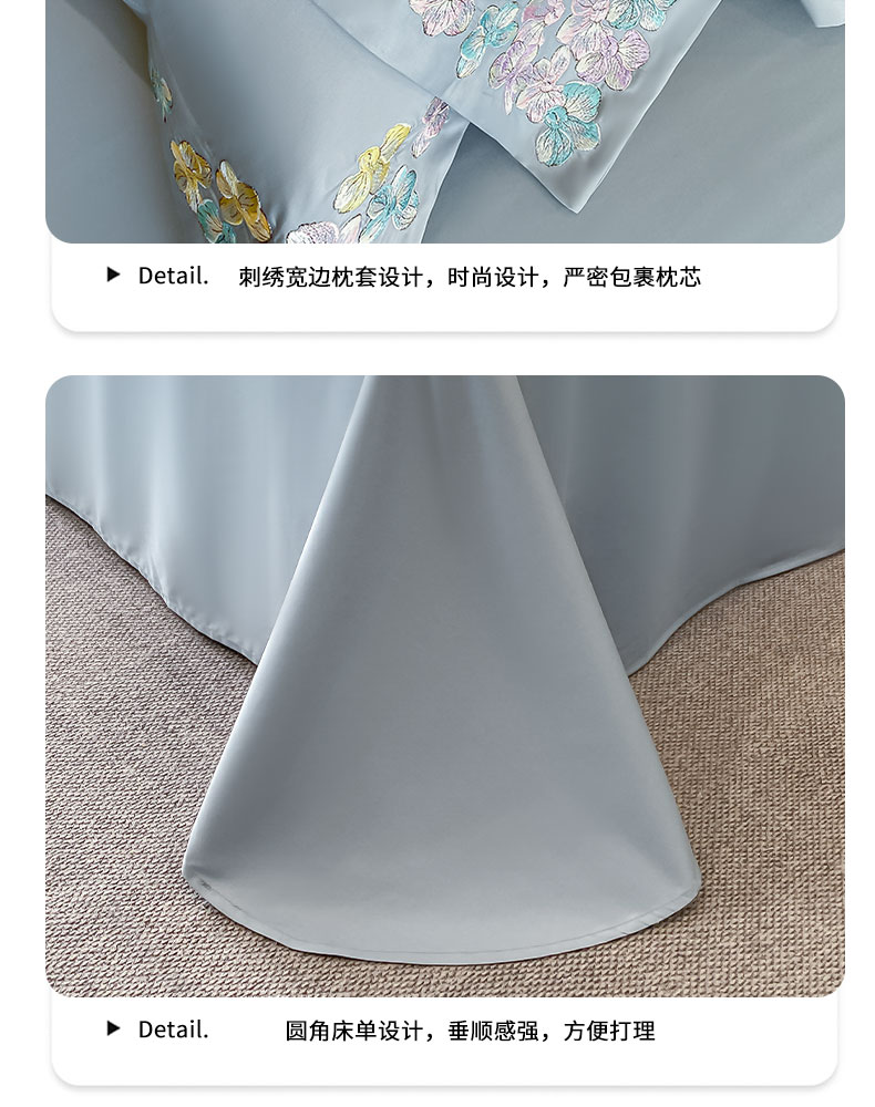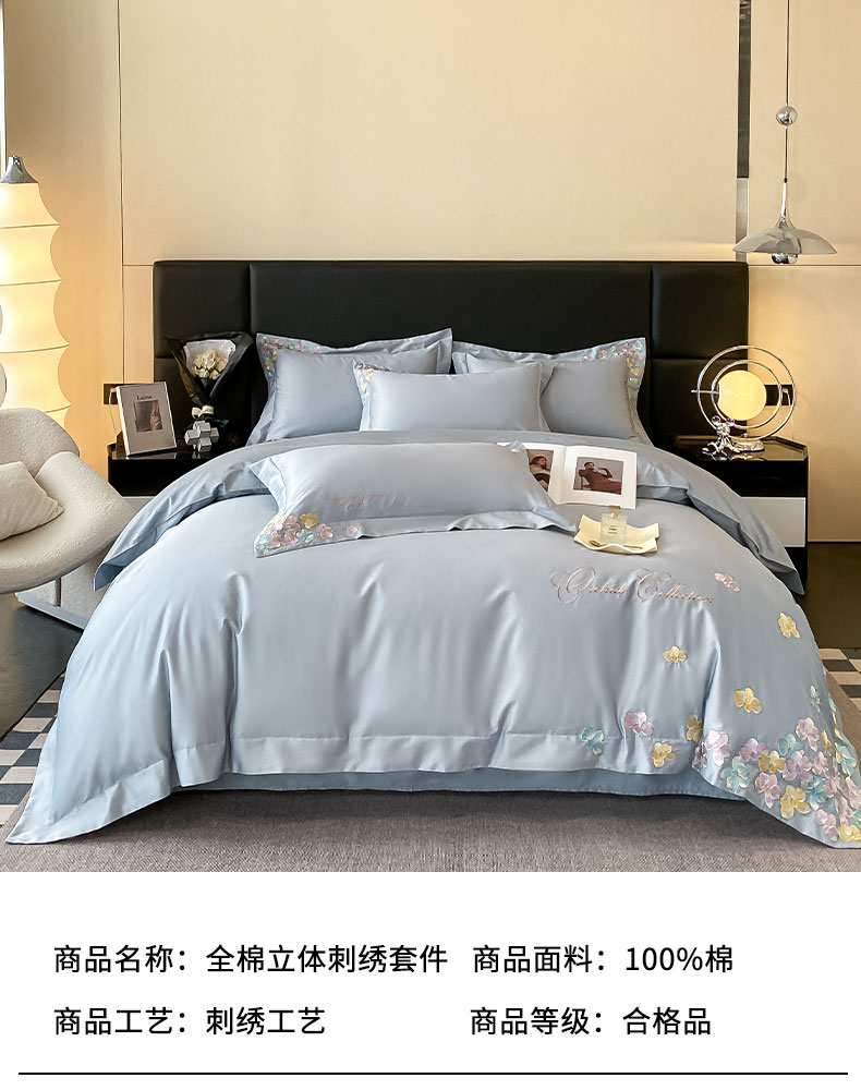 商品名称:丞音家纺 A类100全棉刺绣长绒棉花卉绣花纯棉四件套 蝶恋花-暮光蓝