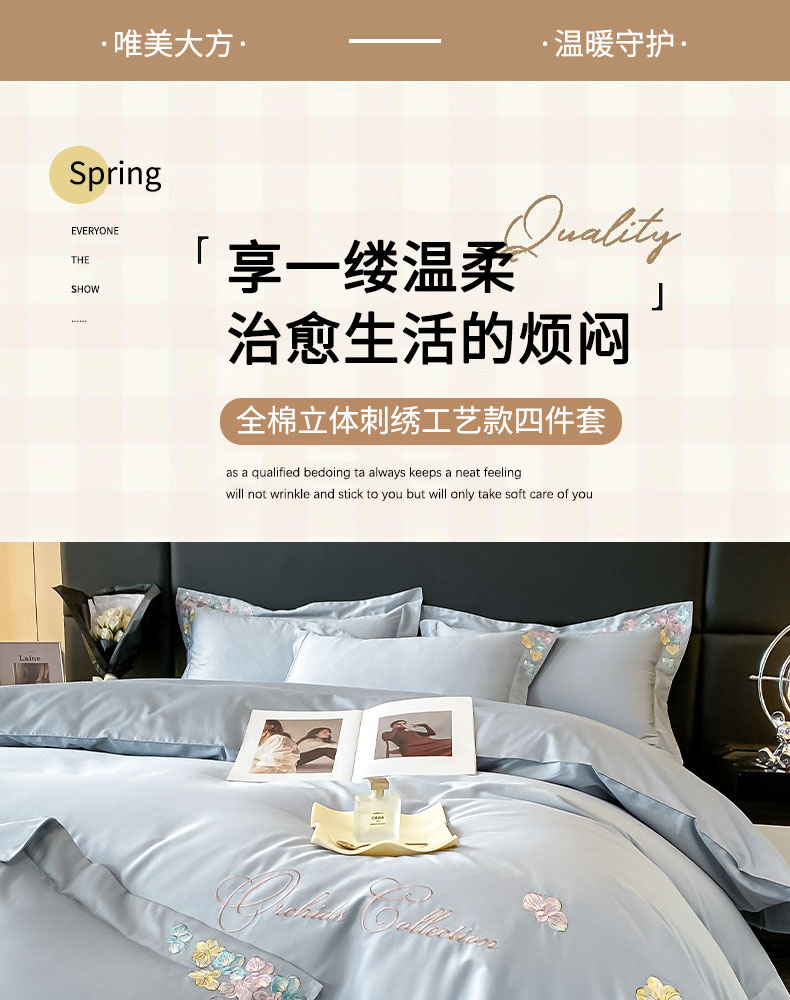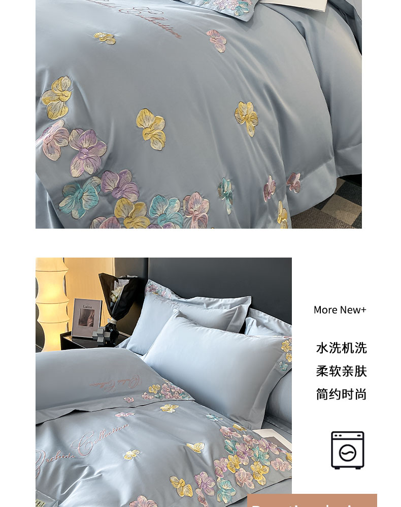 (总)丞音家纺 2025新款高档包装A类母婴级双面全棉蝴蝶刺绣纯棉长绒棉绣花四件套,梦蝶-抹茶绿,梦蝶-冰莓粉,梦蝶-时尚灰,梦蝶-雾霾蓝
