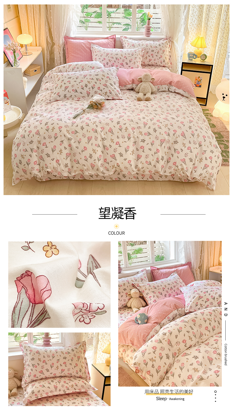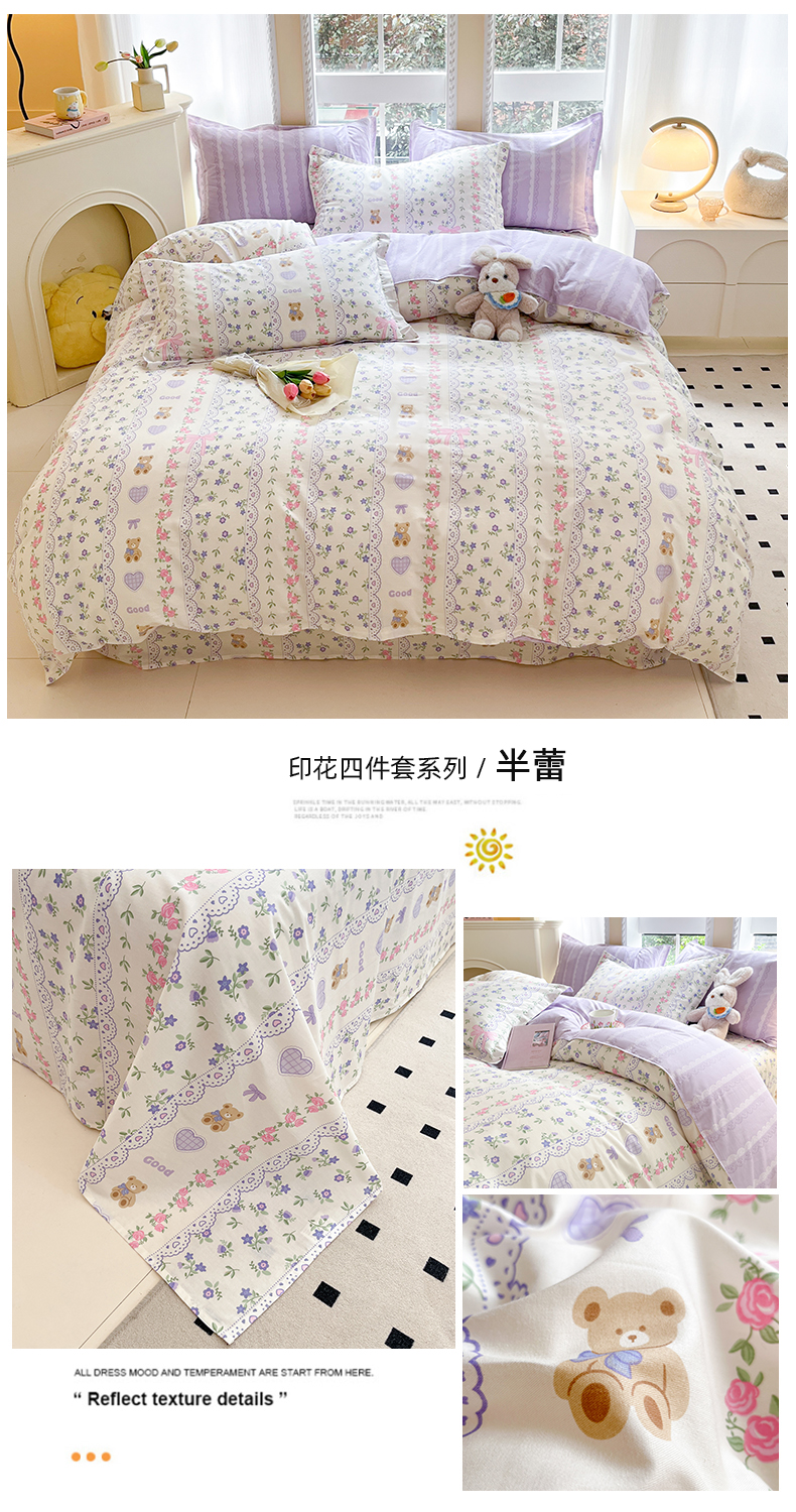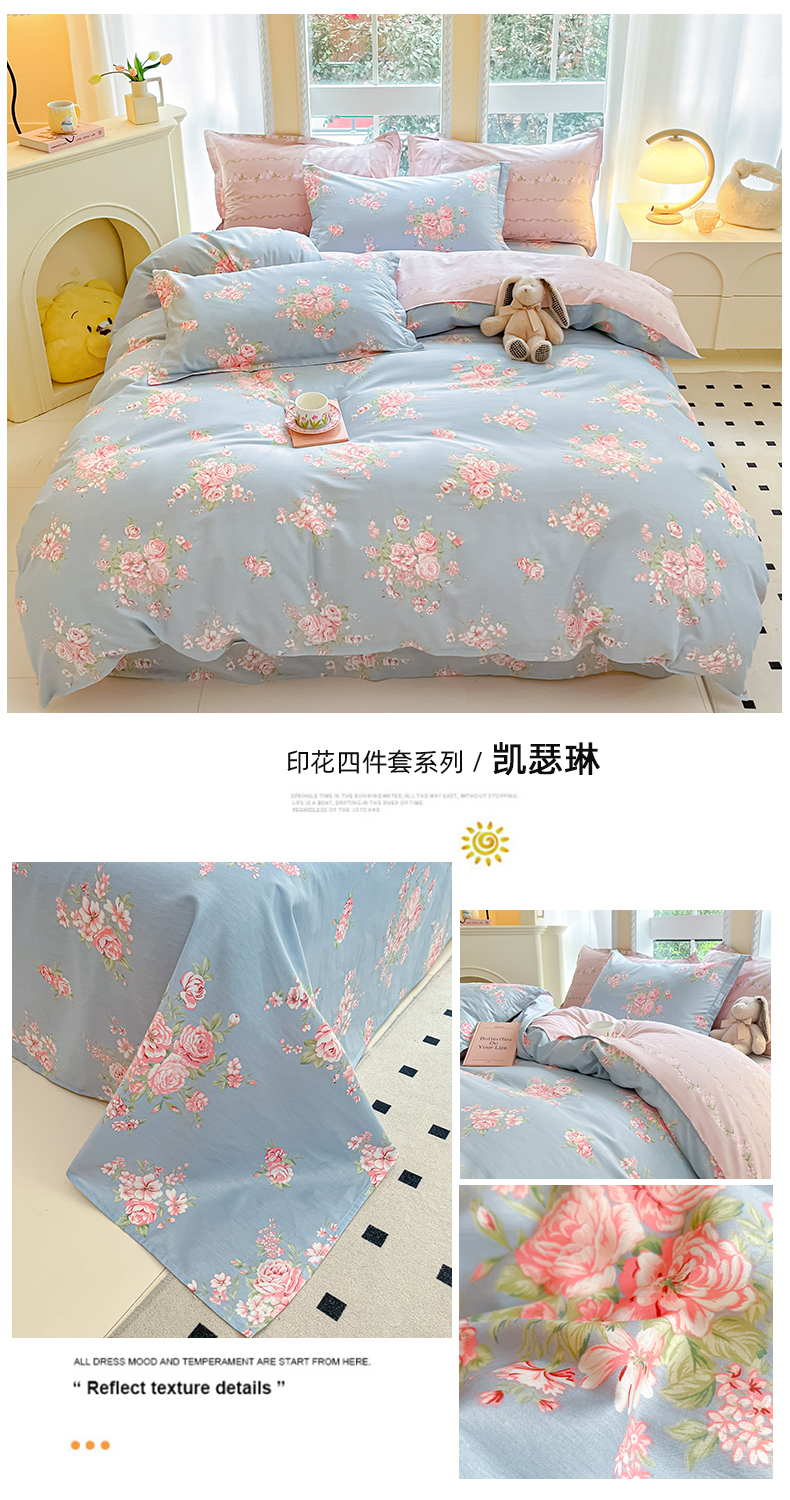 (总)铭成家纺 2024新款新疆棉喷气印花小清新系列四件套