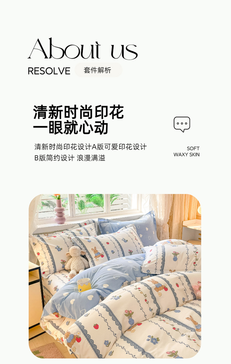 商品名称:(总)铭成家纺 2024新款新疆棉喷气印花小清新系列四件套