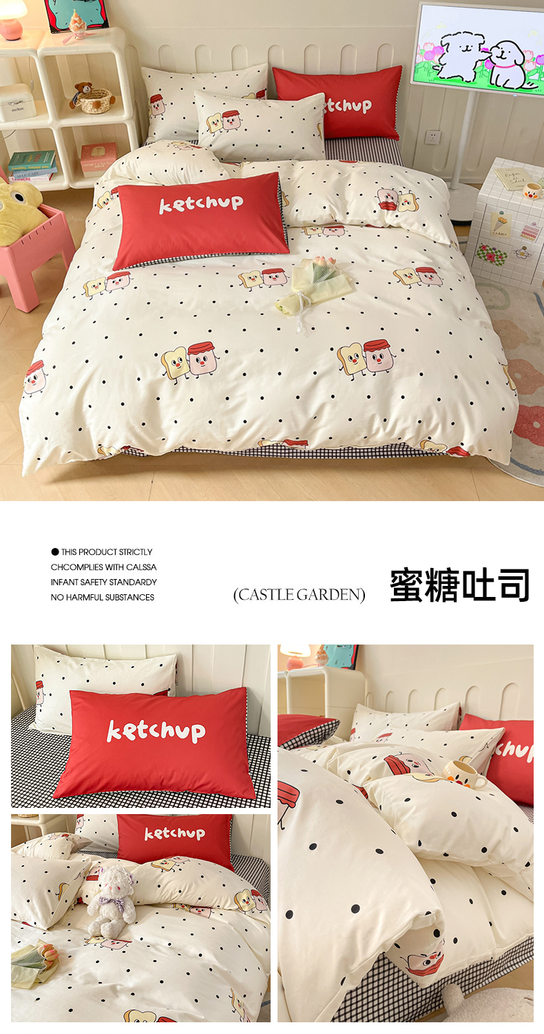 (总)呗旺鹿 2025新款卡通棉+牛奶绒四件套系列,QQ乐园,多彩笑脸,小萌鸭,蘑菇狗,奶油小熊,曲奇小熊
