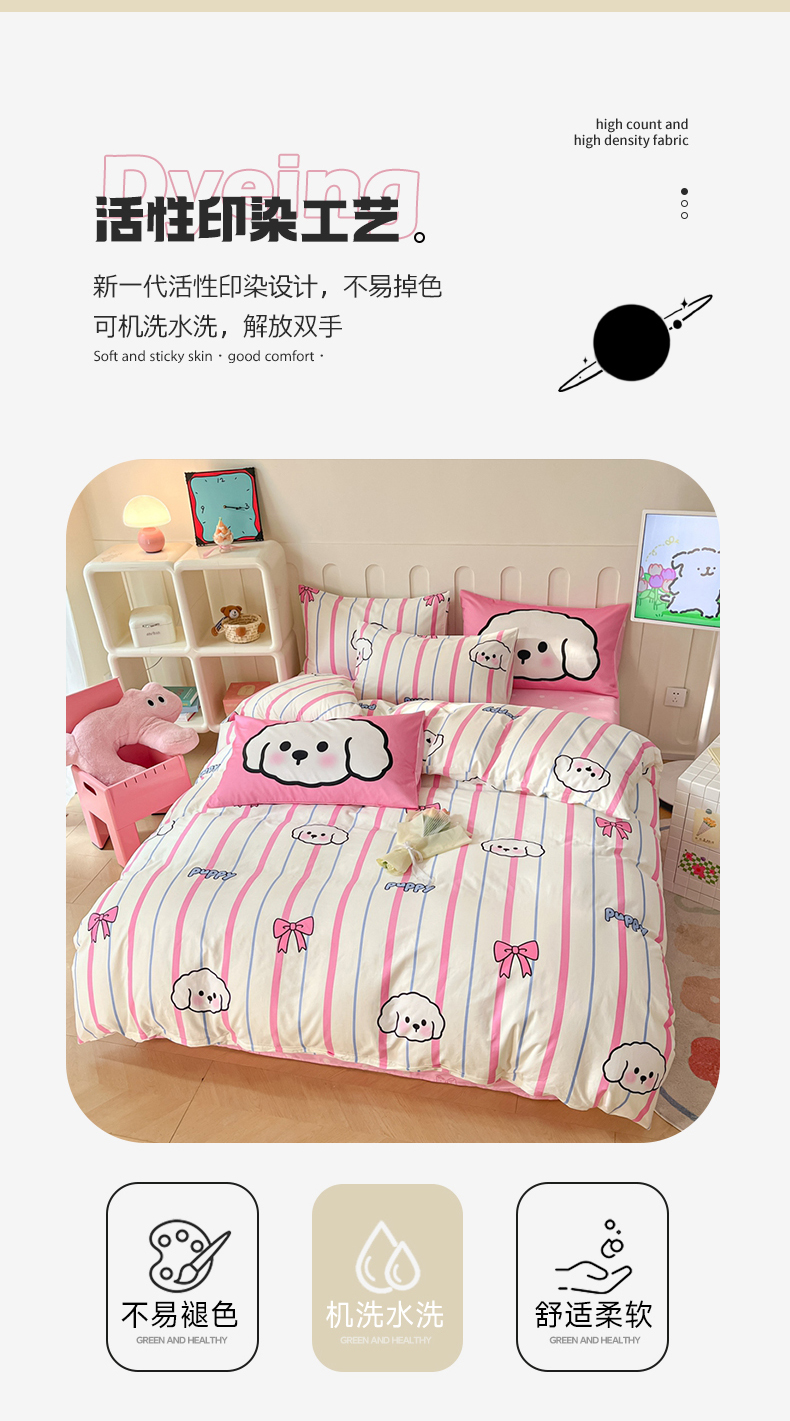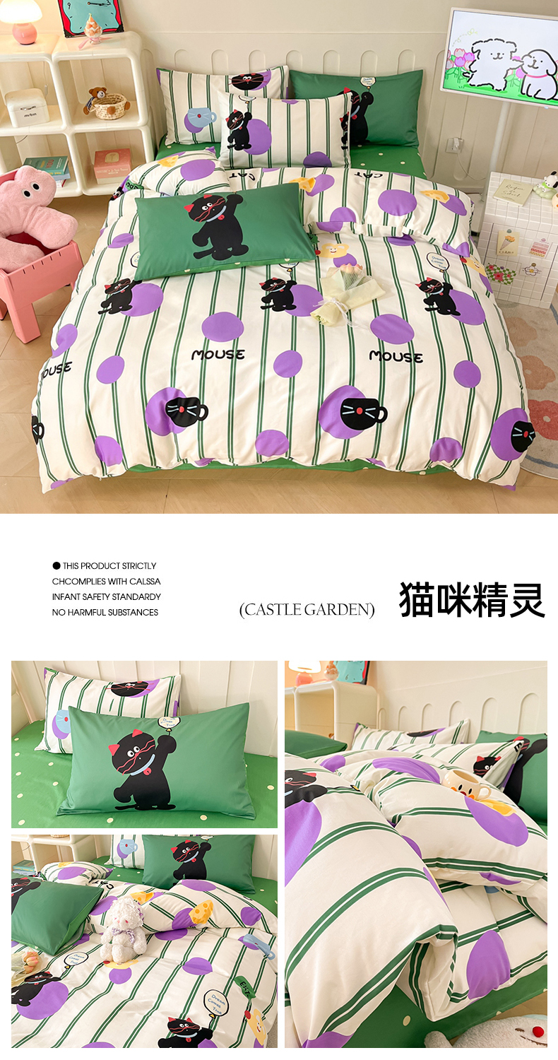 (总)呗旺鹿 2024新款舒适亲肤全棉40支大平网定位枕萌趣印花卡通四件套