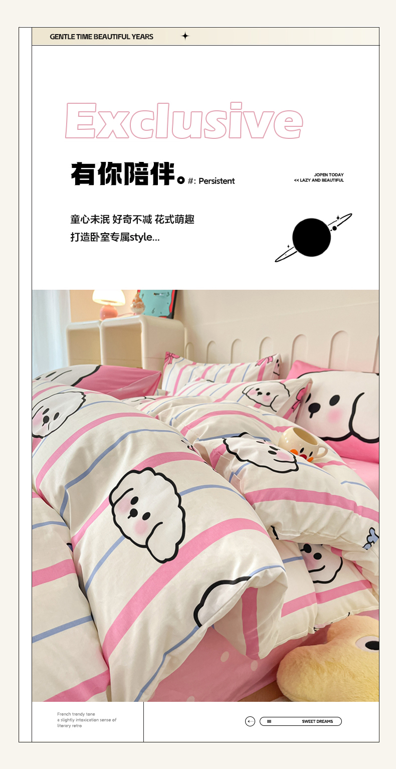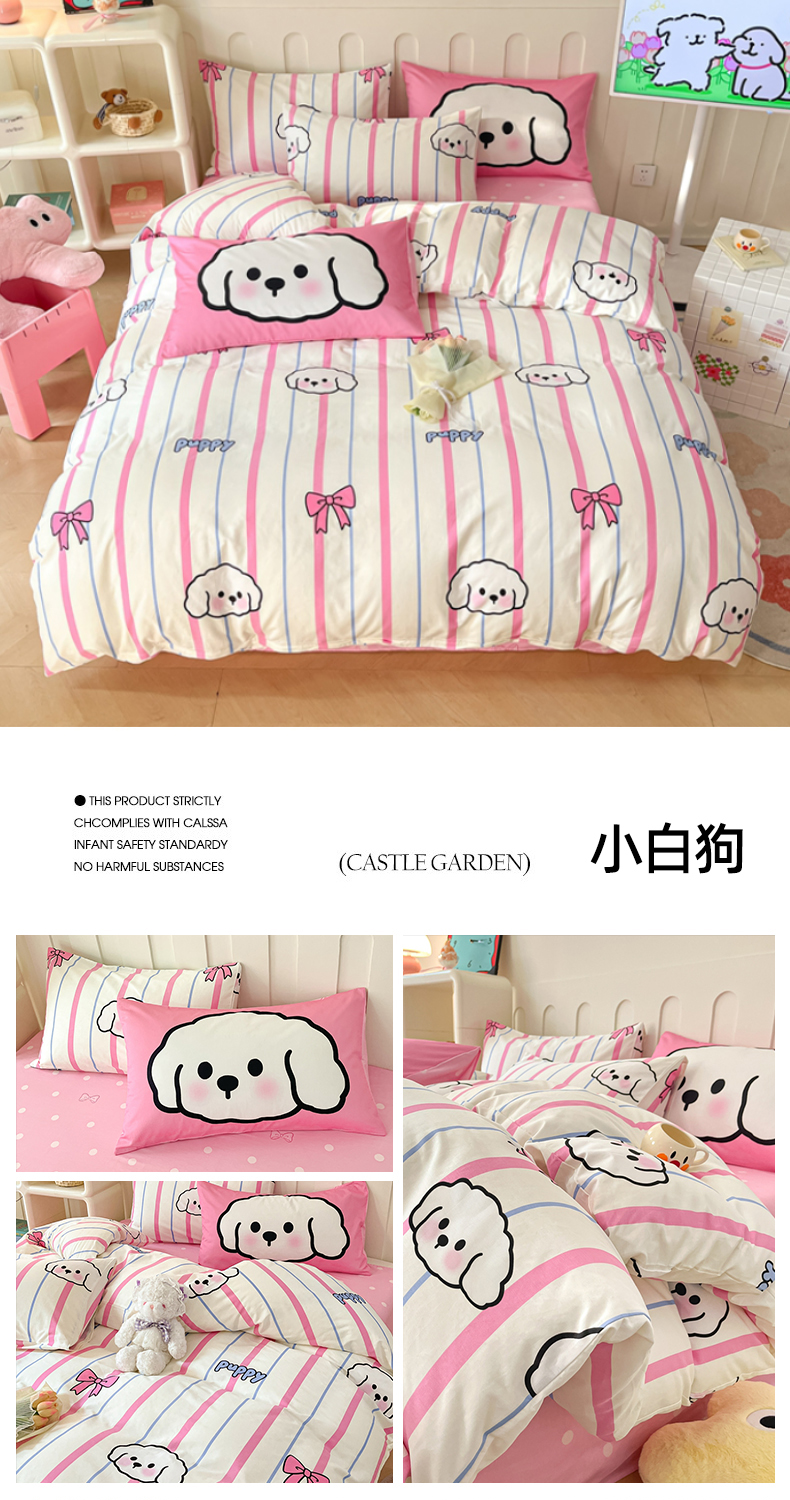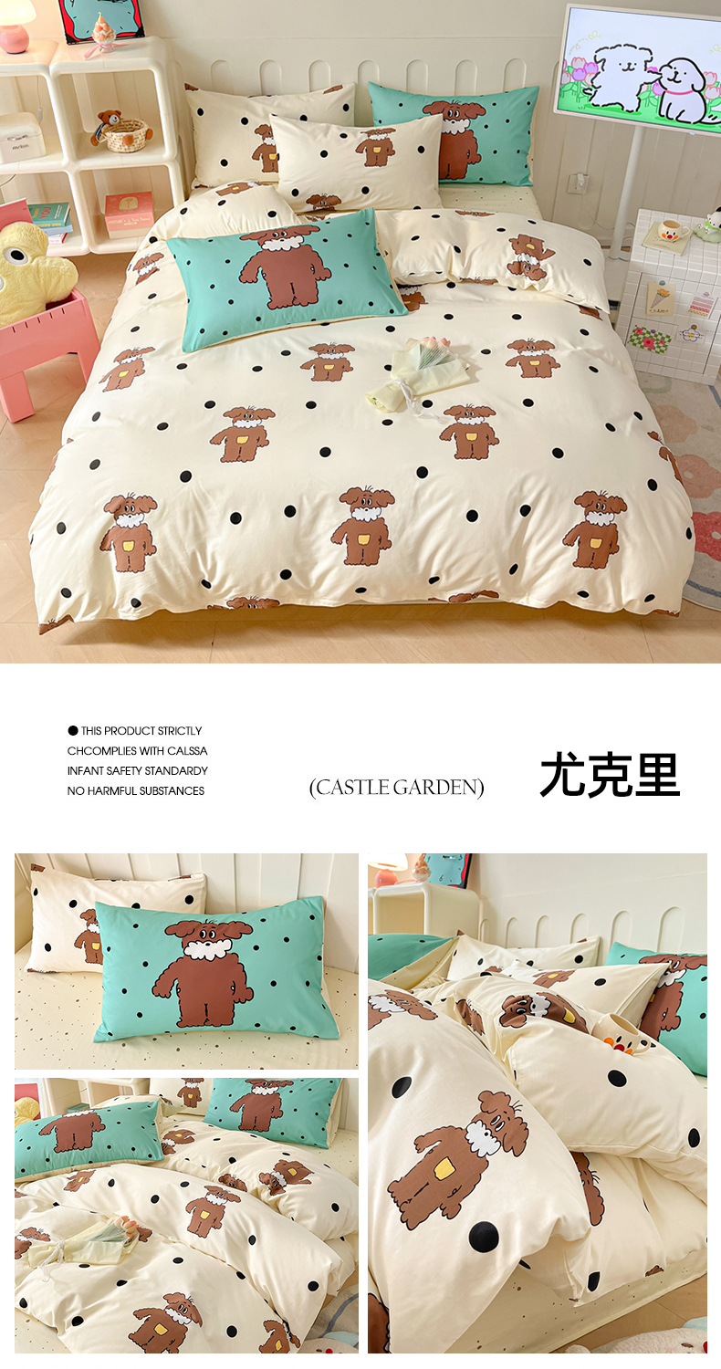 (总)呗旺鹿 2025新款A类高克重卡通印花牛奶绒印花四件套,蝴蝶结圆点小狗,开飞机的小熊,猫狗派对,奶油小猫,奶油星星狗,小熊的礼物,信封小熊,音乐小狗