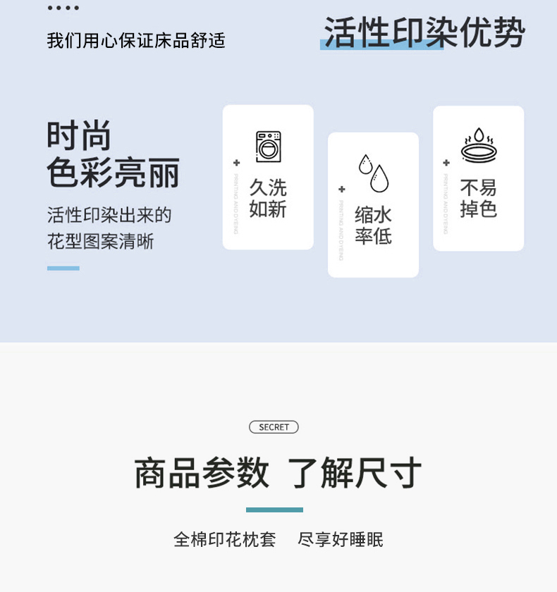 商品名称:铭成家纺 2024新款新疆棉喷气印花小清新系列单品枕套 望凝香