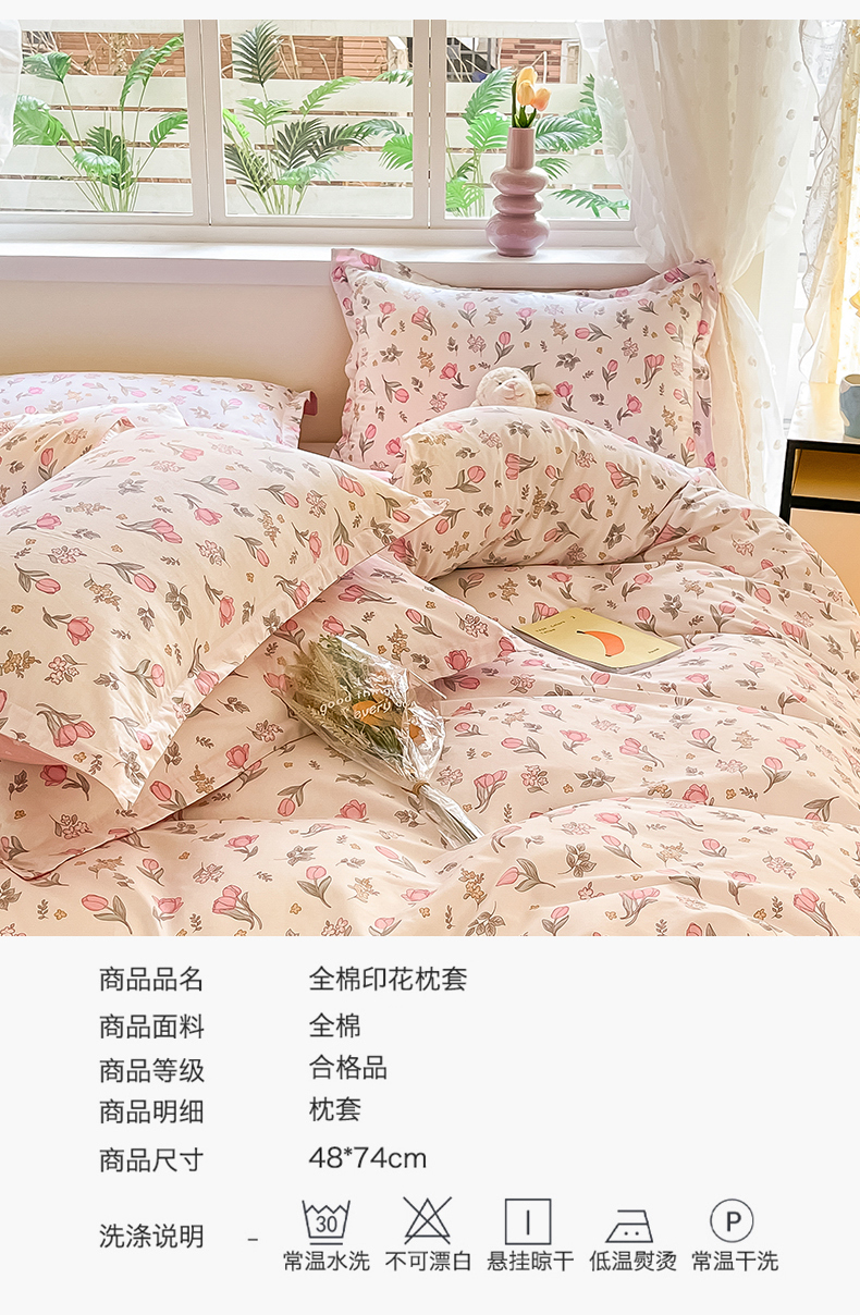铭成家纺 2024新款新疆棉喷气印花小清新系列单品枕套 望凝香