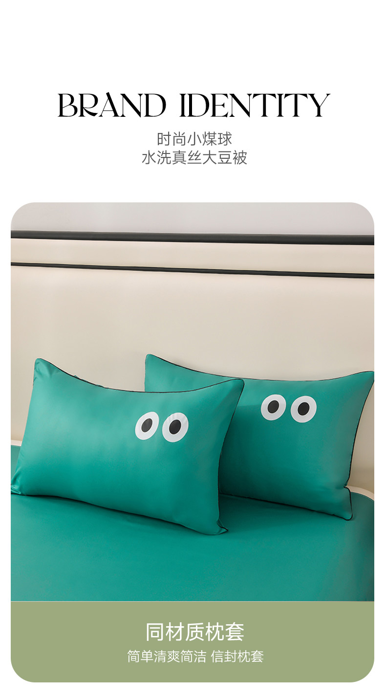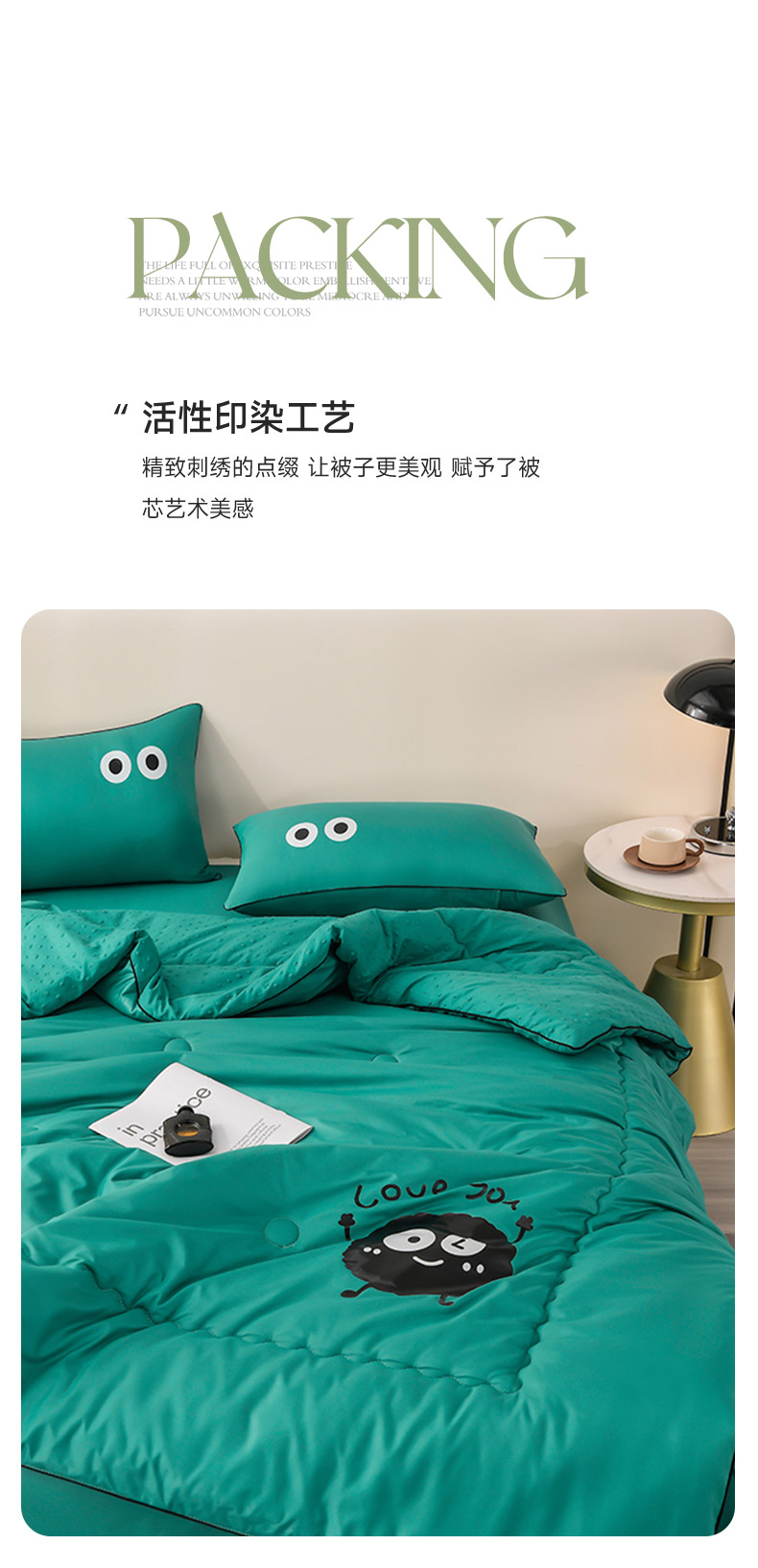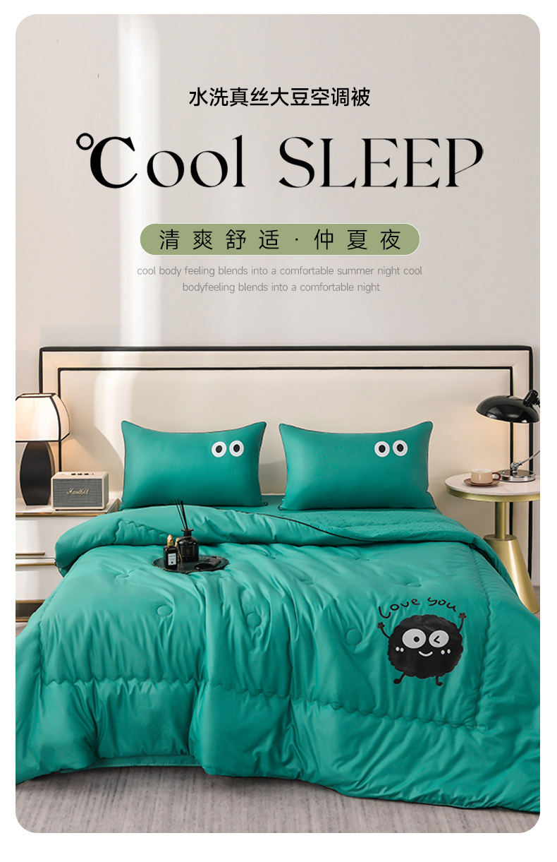 艾兜坊 2024新款水洗真丝大豆被空调被夏被小煤球系列 小煤球-云川绿